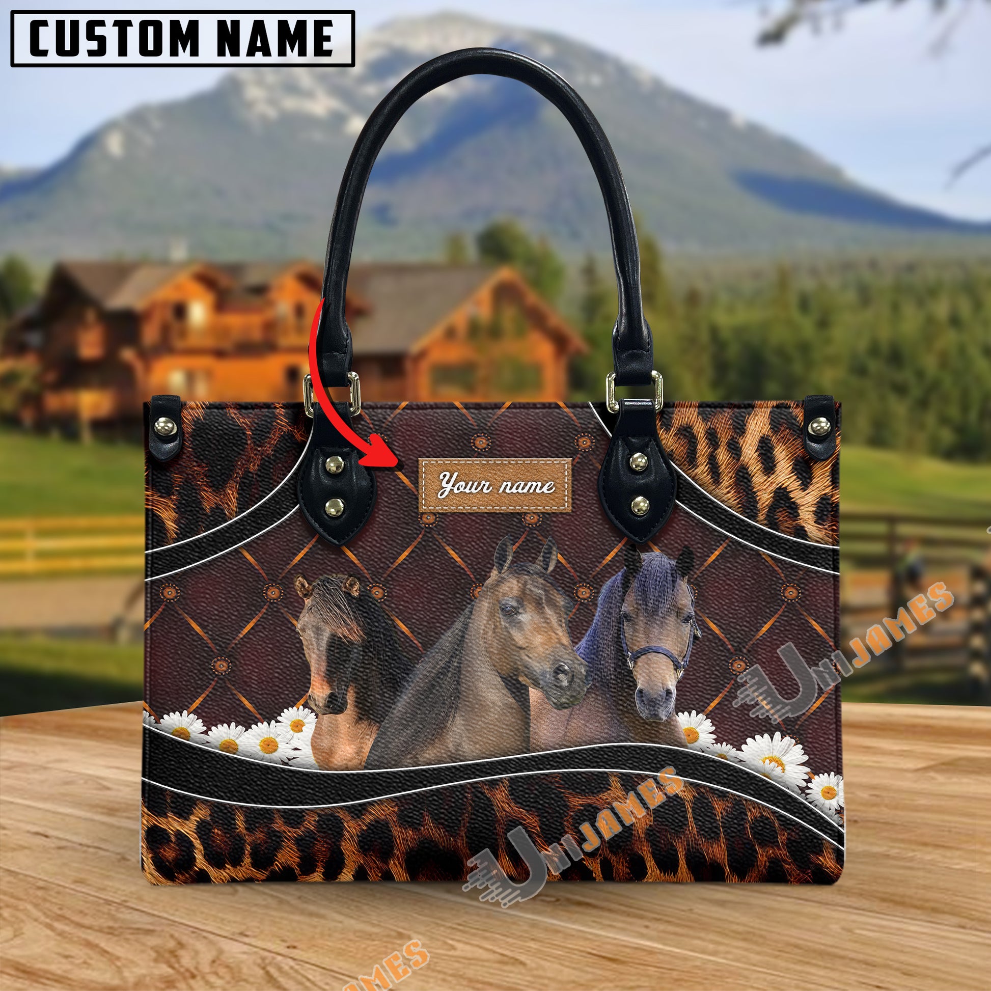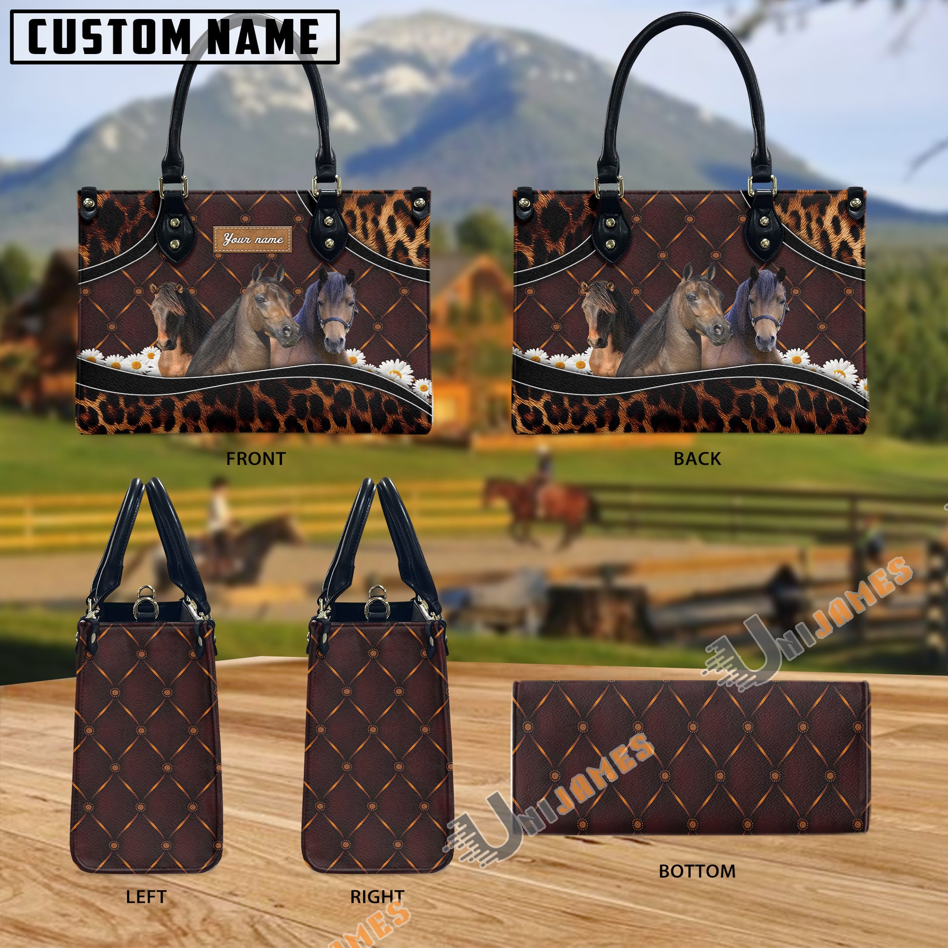 Unijames Morgan Happiness Sunflower Custom Name 3D Leather Handbag