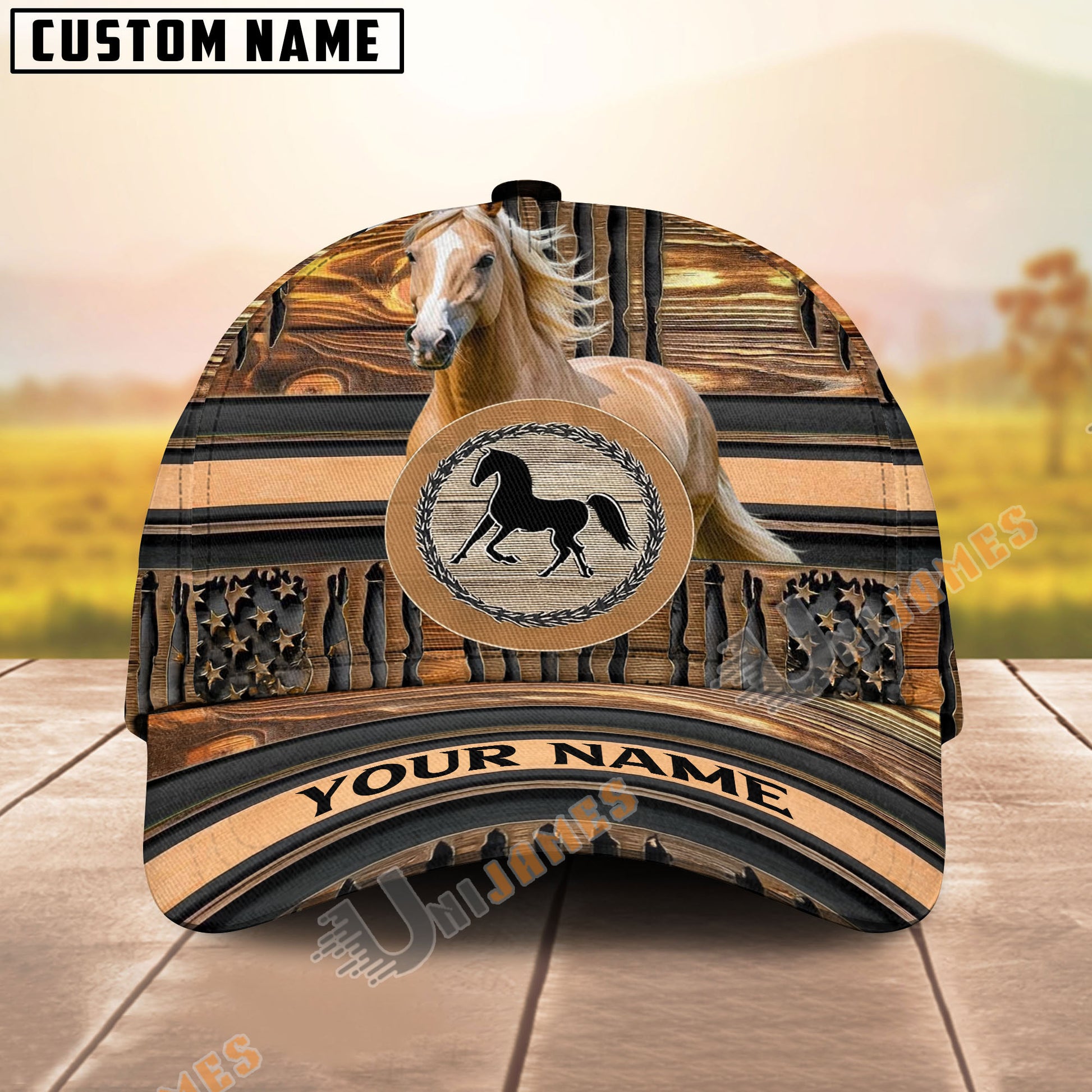 Unijames Palomino American Flag Wooden Pattern Personalized Name Cap
