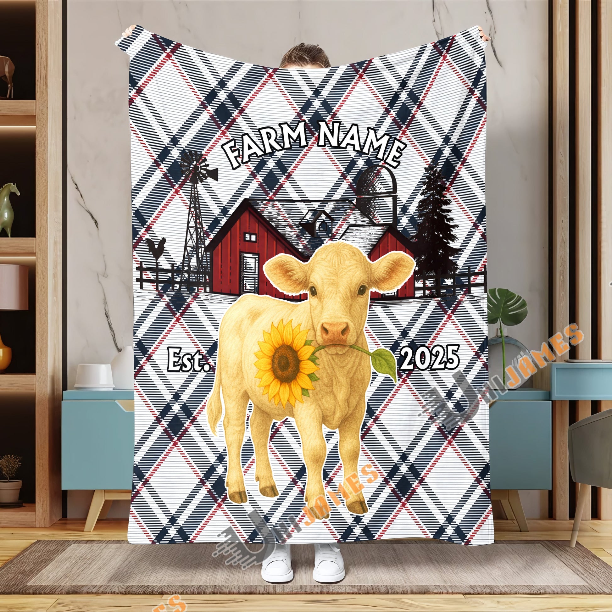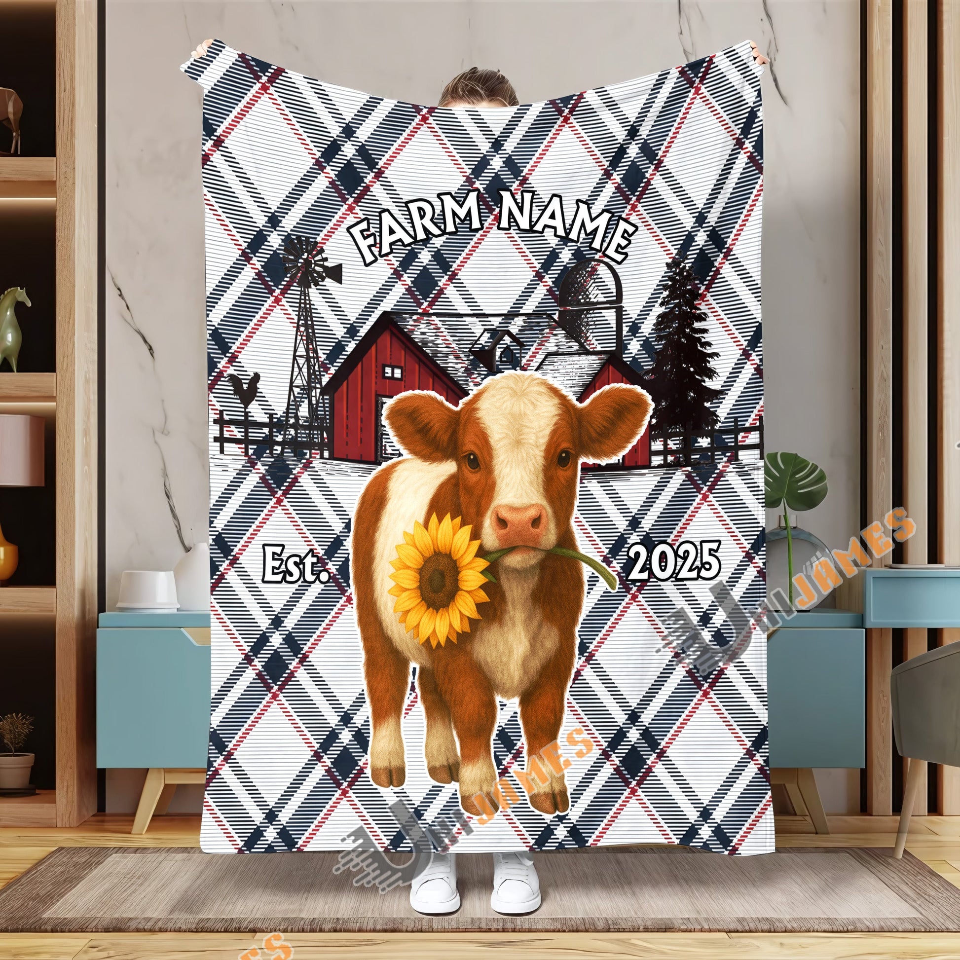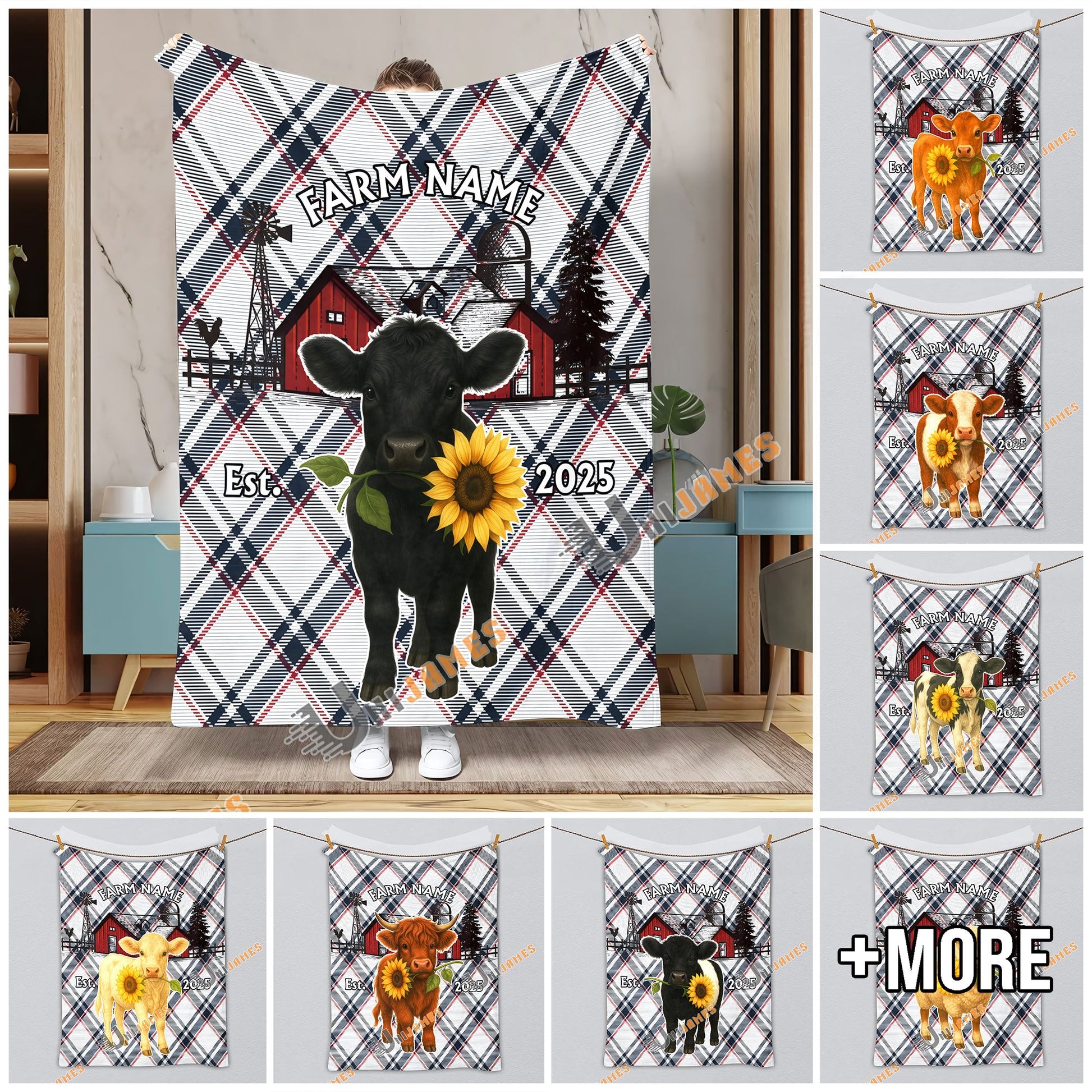 UniJames Personalized Farmhouse Plaid Cow Blanket (12 Cattle Breeds)