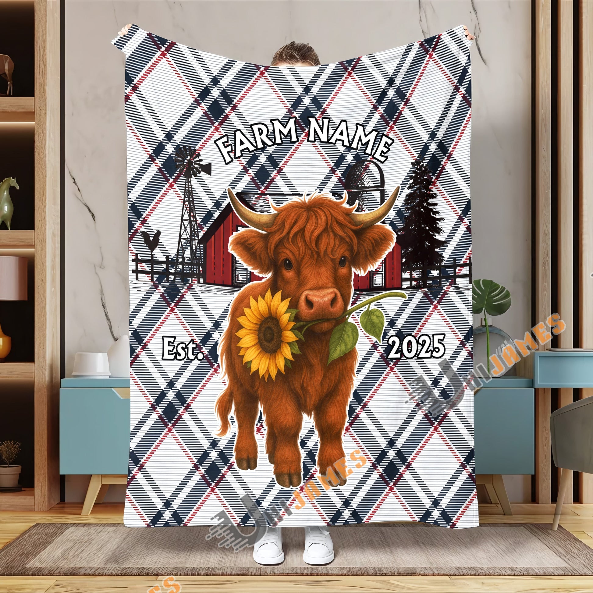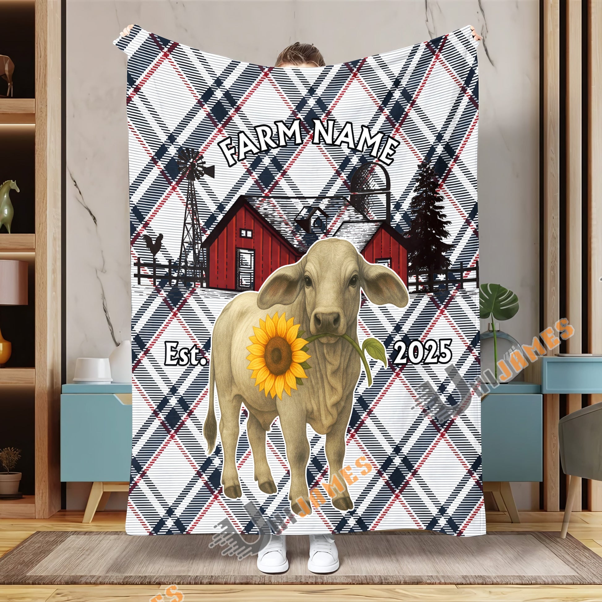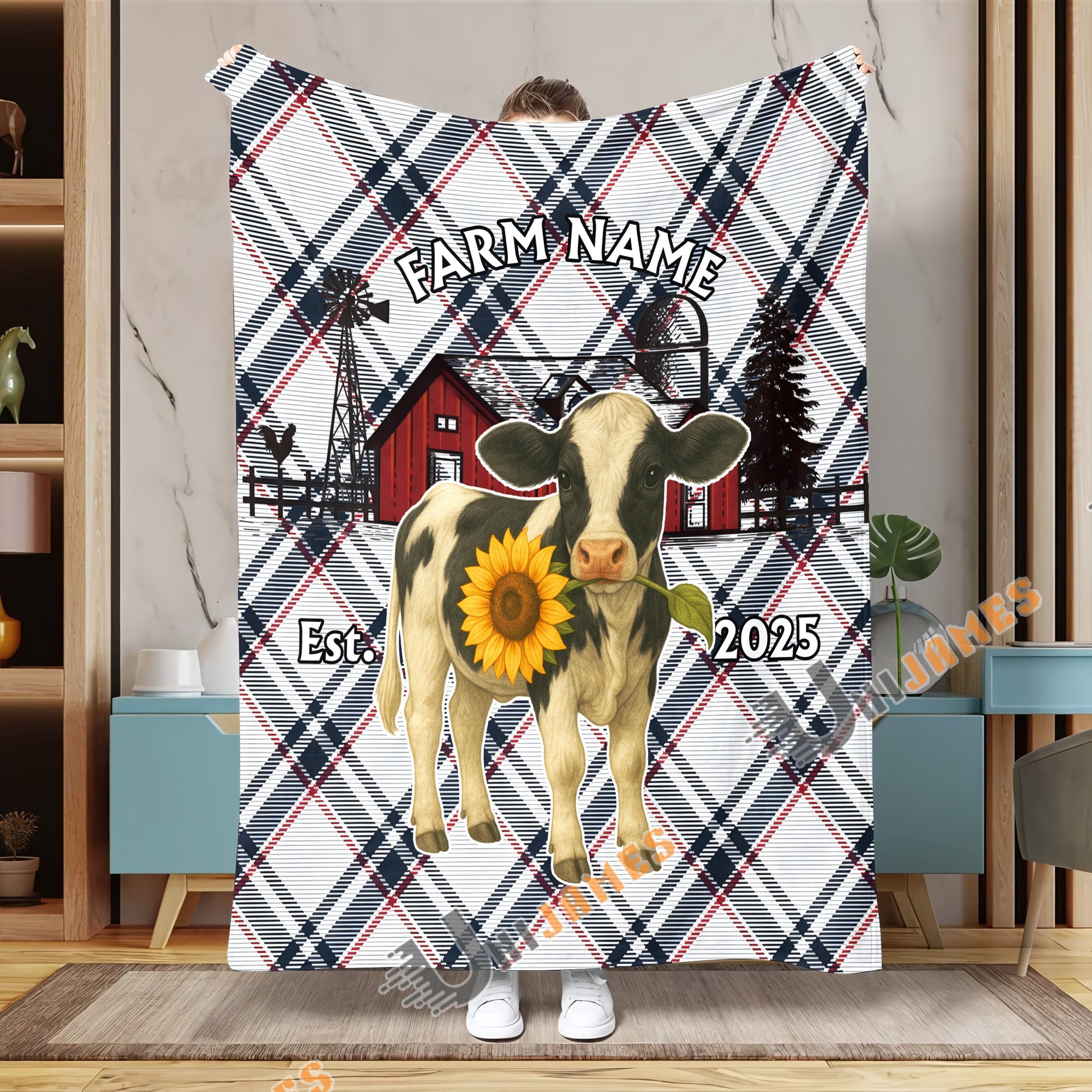 UniJames Personalized Farmhouse Plaid Cow Blanket (12 Cattle Breeds)