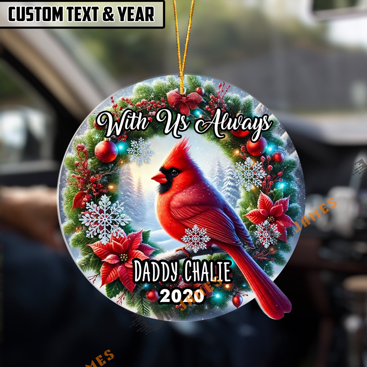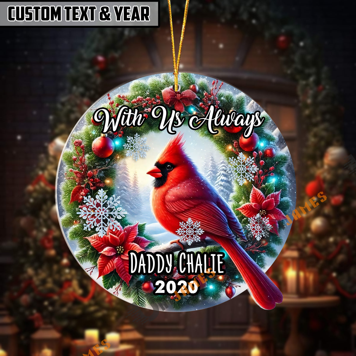 UniJames Personalized With Us Always Cardinal Memorial Christmas Ornament Acrylic Ornament