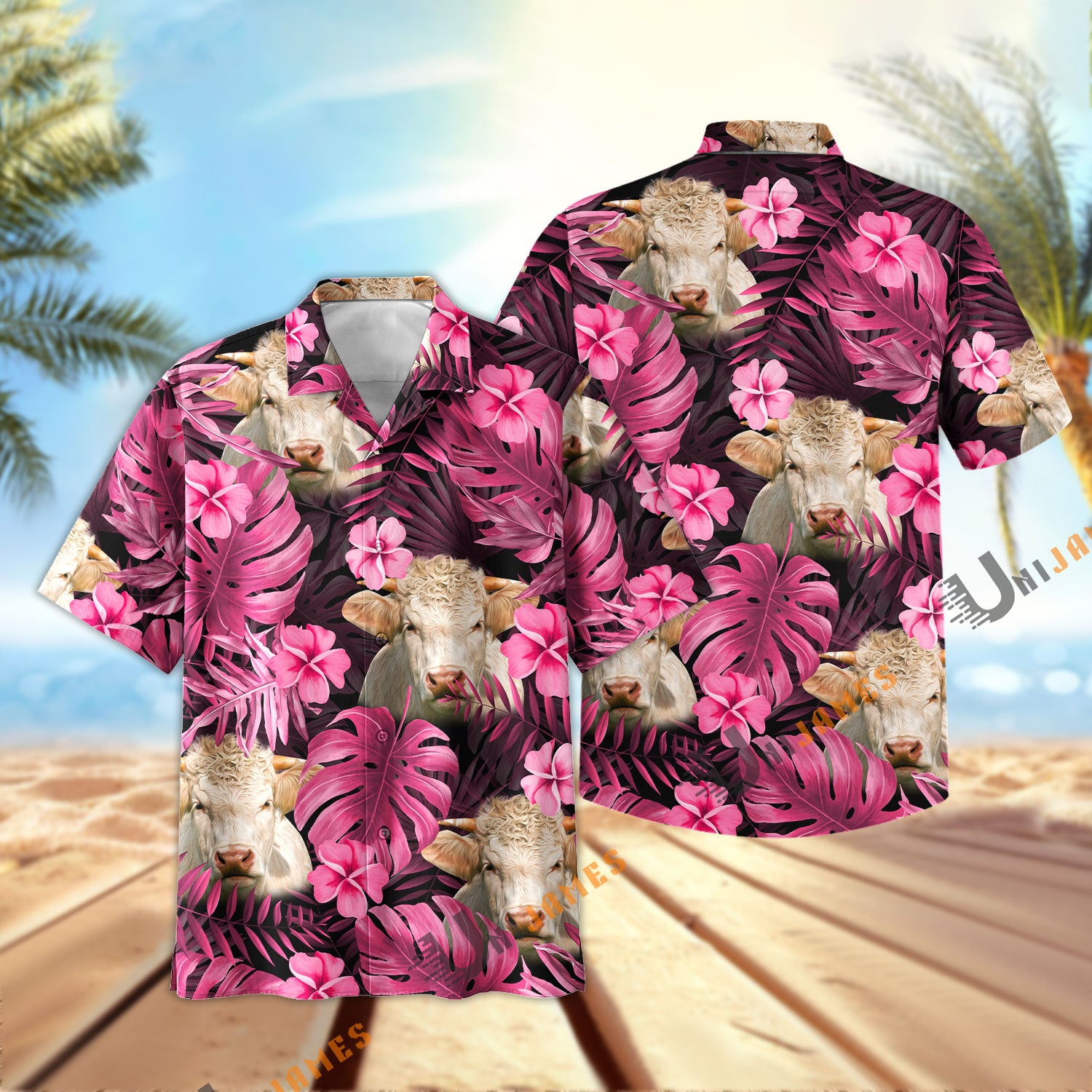 UniJames Pink Breeze Charolais Hawaiian Shirt