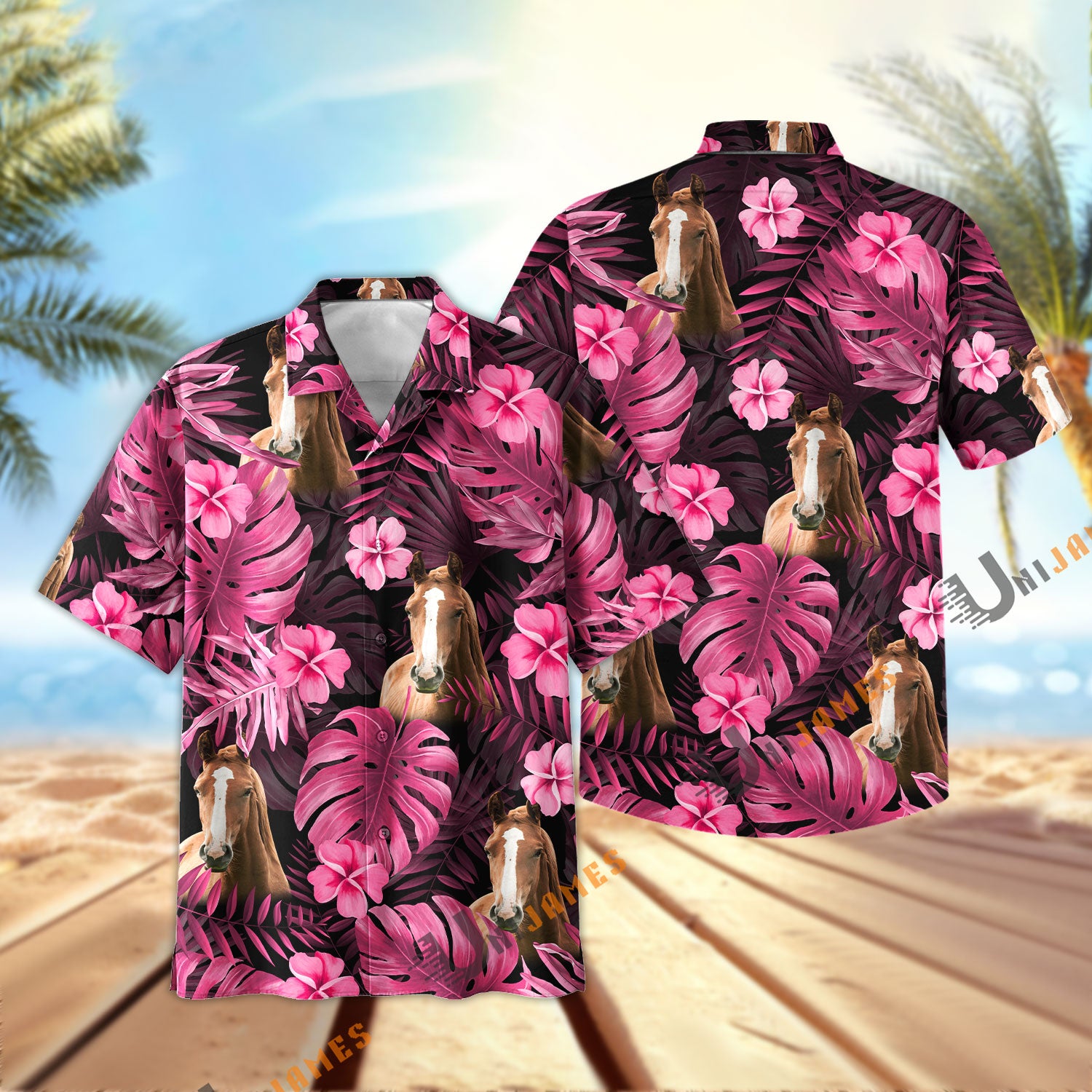 UniJames Pink Breeze Horse Hawaiian Shirt