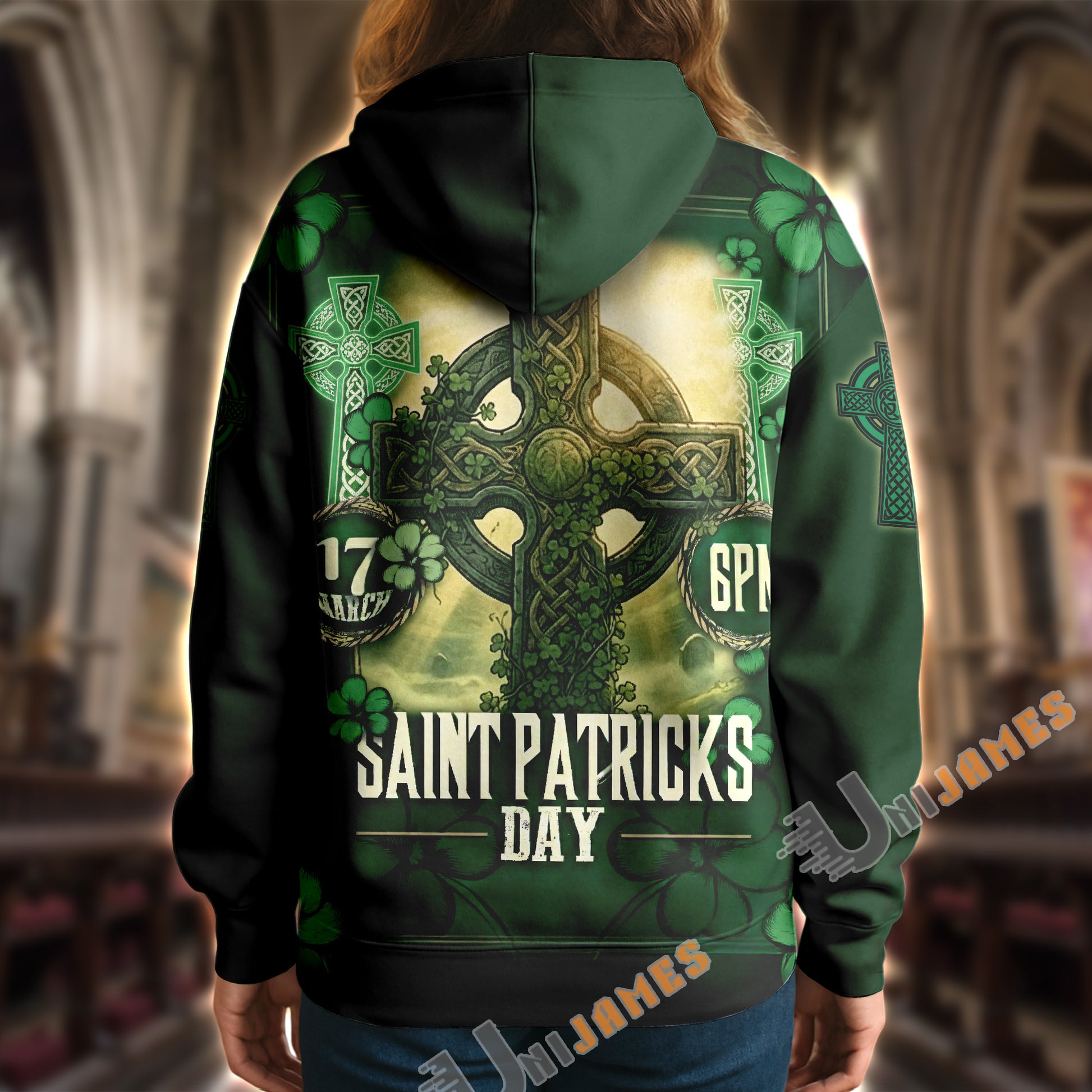 Unijames St. Patrick Vintage Holy Cross 3D All-Over Print Hoodie
