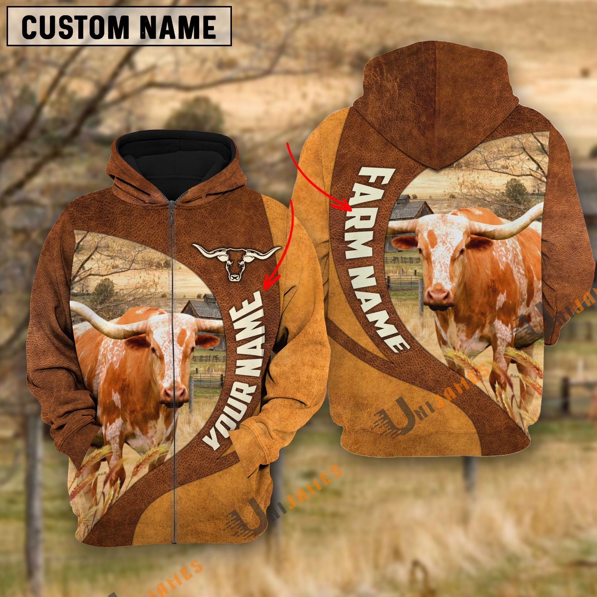 Unijames Texas Longhorn Farming Life Personalized Name 3D Hoodie