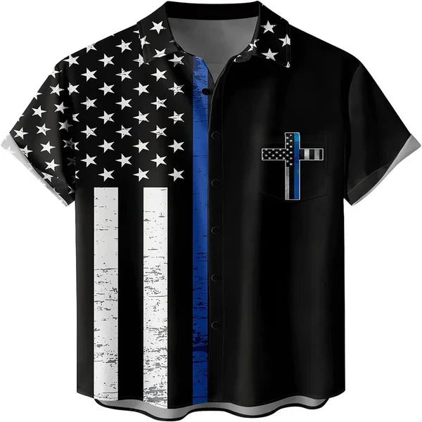 UniJames The Cross America Flag Christian Hawaiian Shirt - Hawaiian Beach Shirts for Men Women