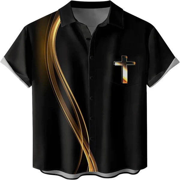 UniJames The Cross Gold Christian Hawaiian Shirt - Hawaiian Beach Shirts for Men Women