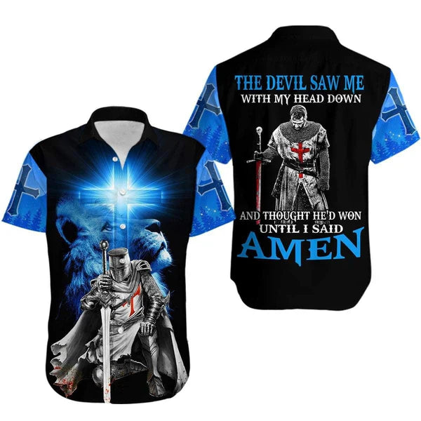 UniJames The Devil Saw Me With My Head Down Knight Jesus Lion King Hawaiian Shirts - Christian Hawaiian Shirts For Men & Women