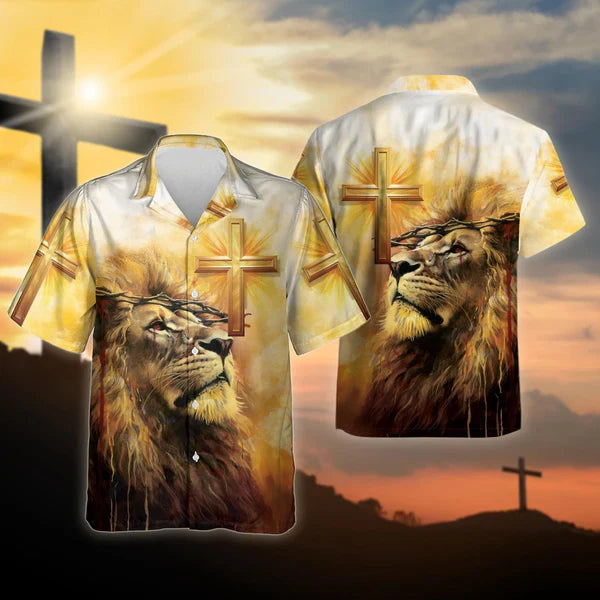 UniJames The Lion Cross Christian Hawaiian Shirt - Hawaiian Beach Shirts for Men Women