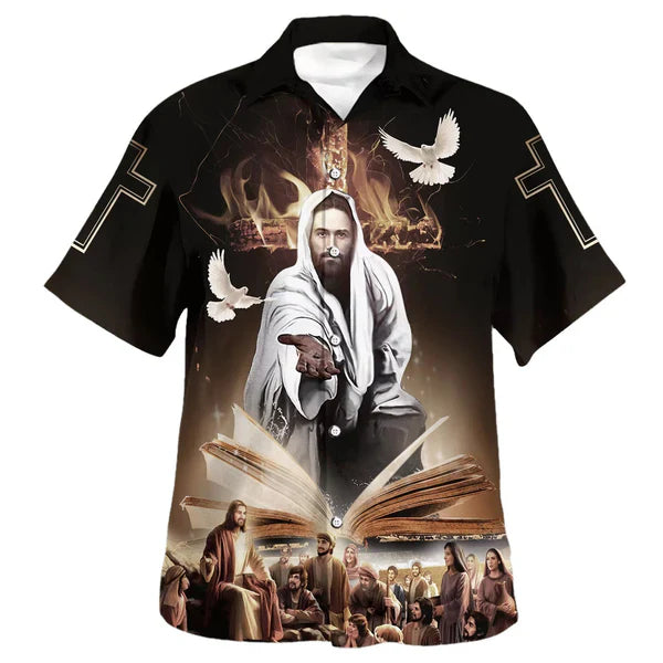 UniJames The Lion Of Judah Jesus Reaching Out His Hand Hawaiian Shirt - Christian Hawaiian Shirt - Religious Hawaiian Shirts
