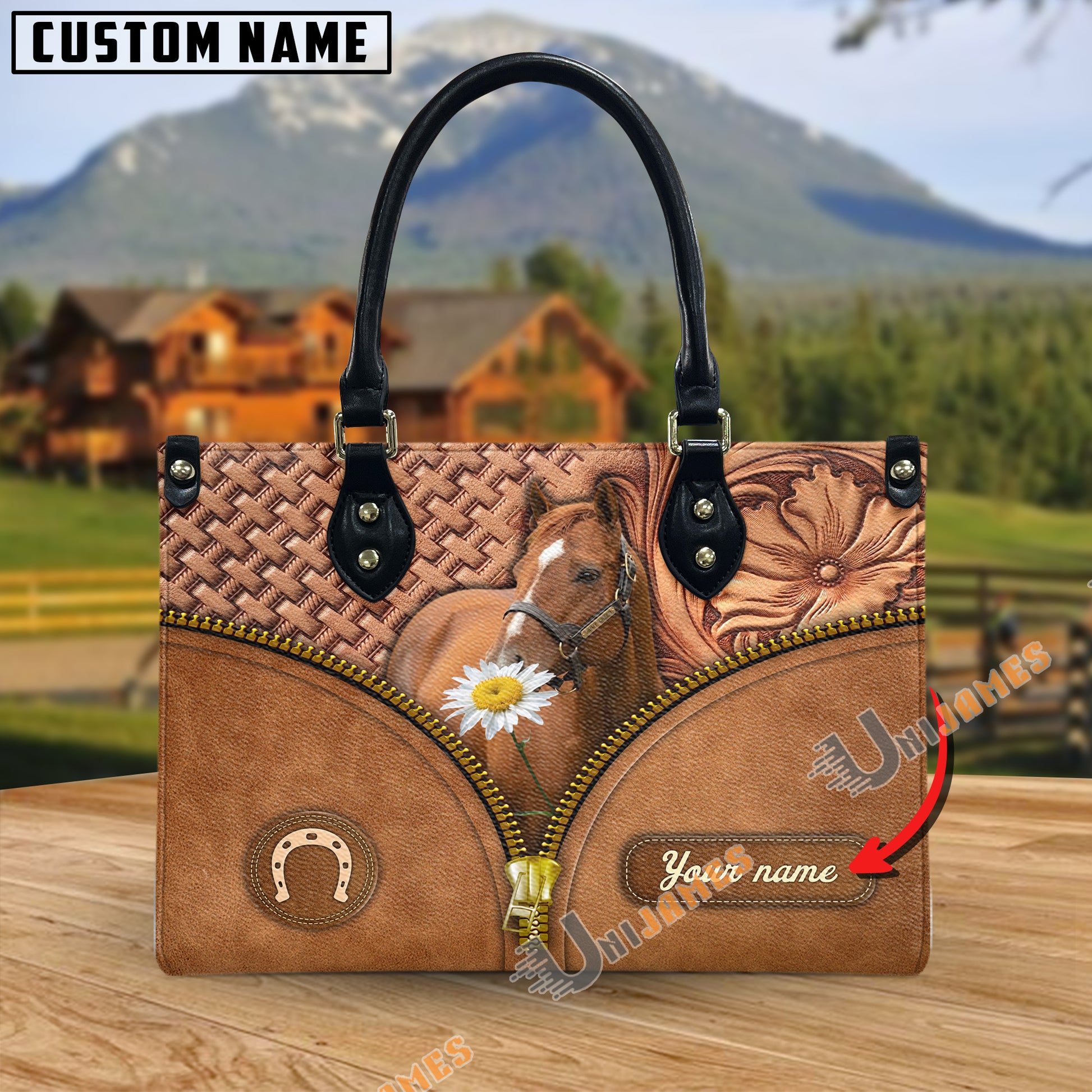 Unijames Thoroughbred Center Zip Pattern Custom Name 3D Leather Handbag