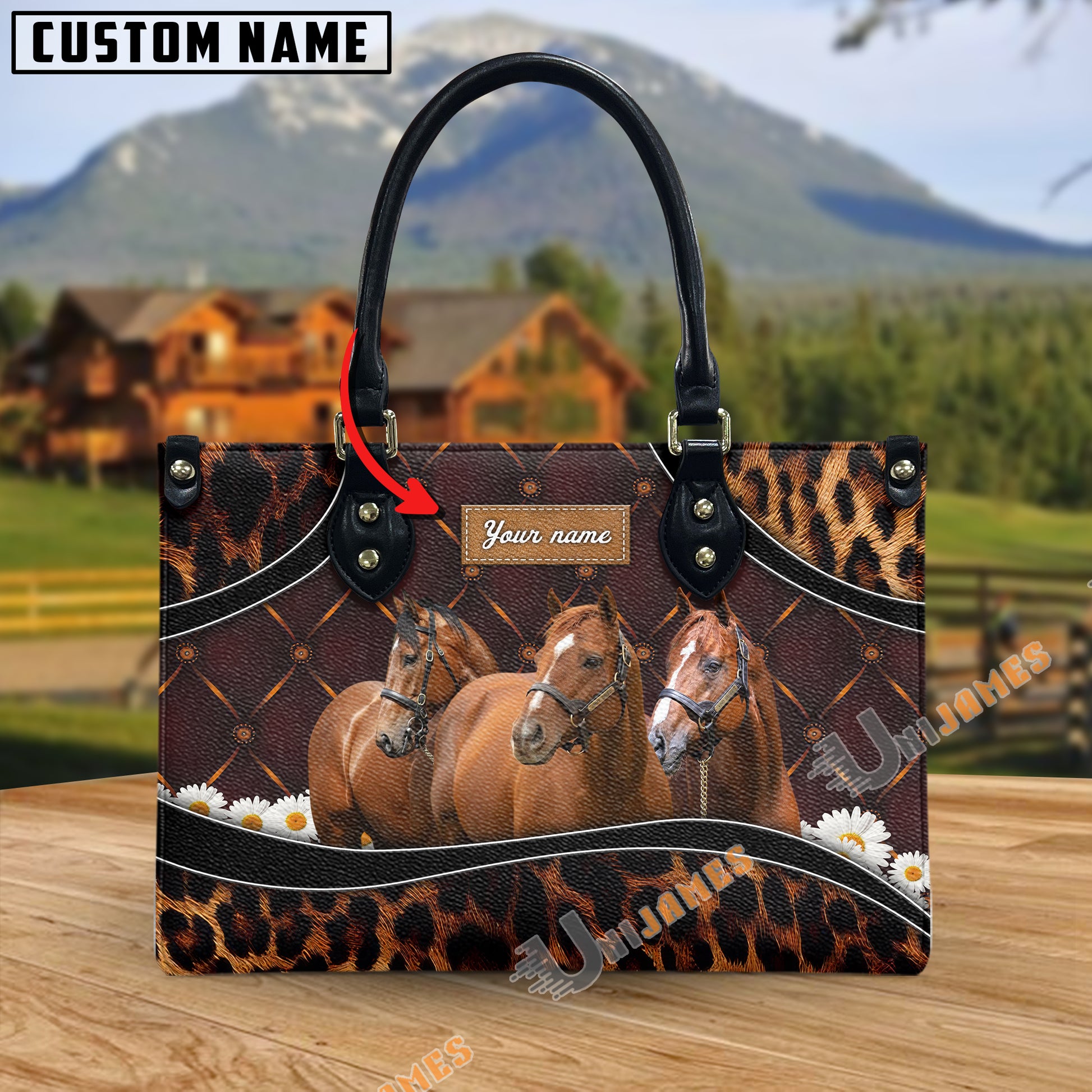 Unijames Thoroughbred Happiness Sunflower Custom Name 3D Leather Handbag