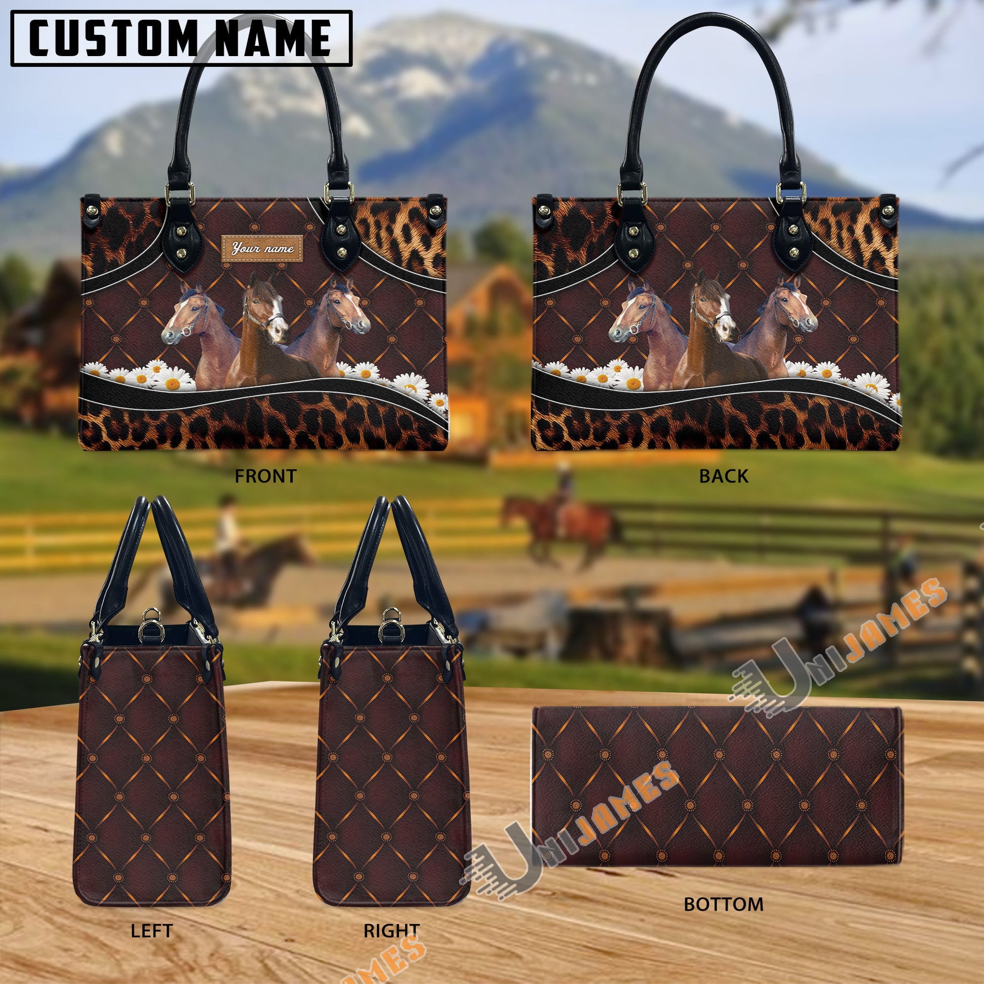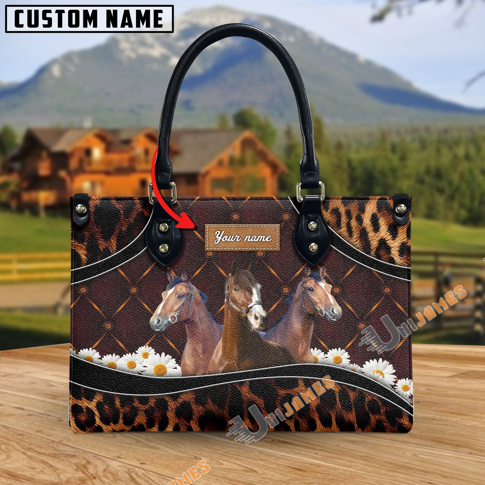 Unijames Warmblood Happiness Sunflower Custom Name 3D Leather Handbag