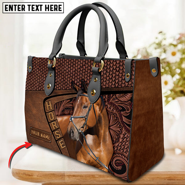 Unijames Warmblood Horse Carving Leather Pattern Custom Name 3D Leather Handbag