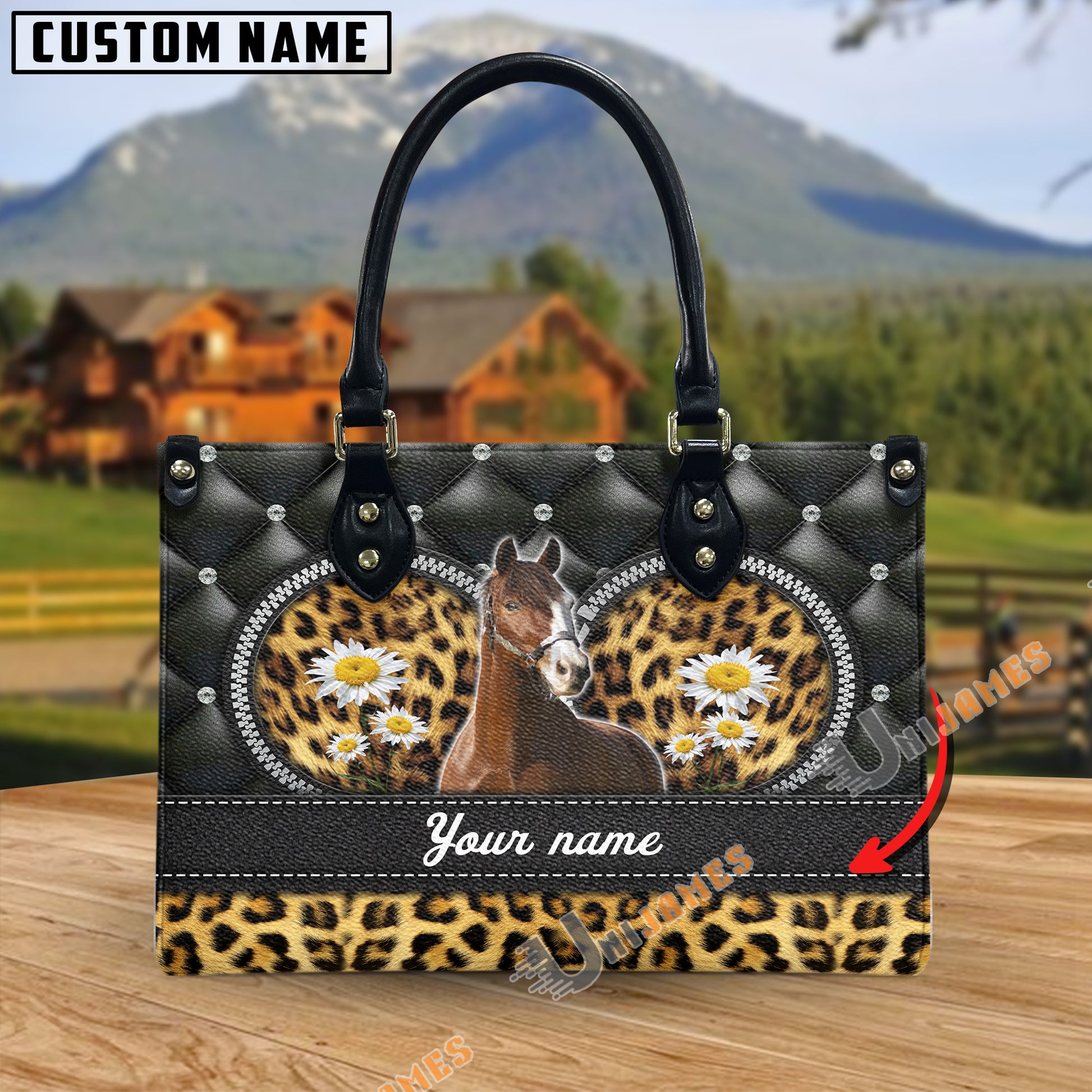 Unijames Warmblood Leather Heart Pattern Custom Name 3D Leather Handbag