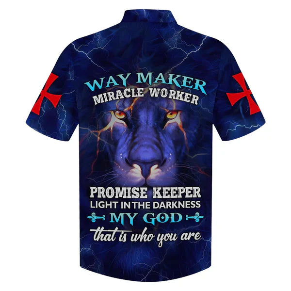 UniJames Way Maker Miracle Worker Promise Keeper Light In The Darkness My God That Is Who You Are Lion Hawaiian Shirt - Best Hawaiian Shirts - Christian Hawaiian Shirt