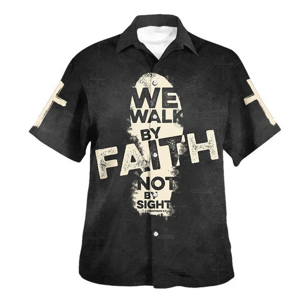 UniJames We Walk By Faith Not By Sight Cross Hawaiian Shirt - Christian Hawaiian Shirt - Religious Hawaiian Shirts