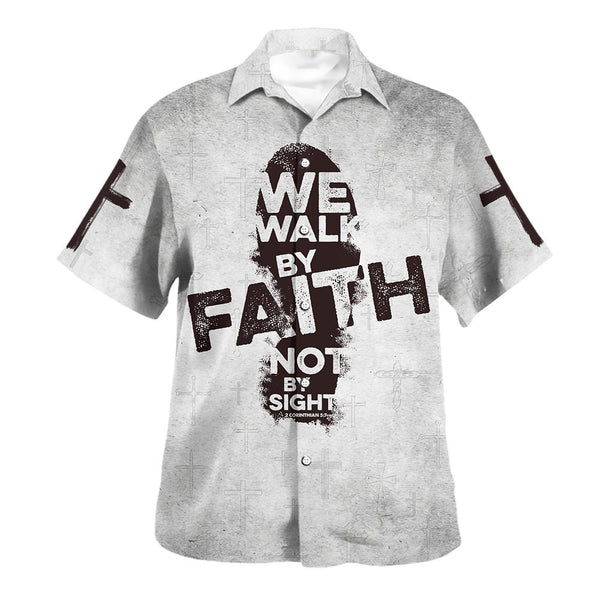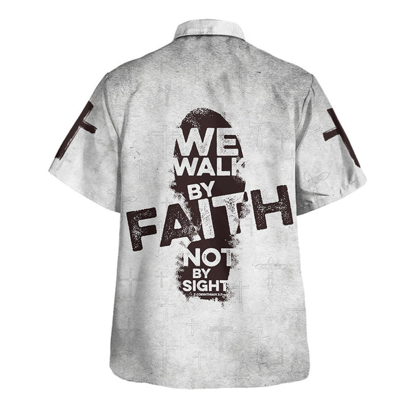 UniJames We Walk By Faith Not By Sight Jesus Cross Hawaiian Shirt - Christian Hawaiian Shirt - Religious Hawaiian Shirts