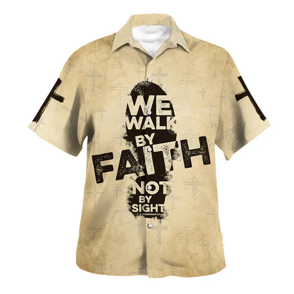 UniJames We Walk By Faith Not By Sight Jesus Hawaiian Shirt - Christian Hawaiian Shirt - Religious Hawaiian Shirts