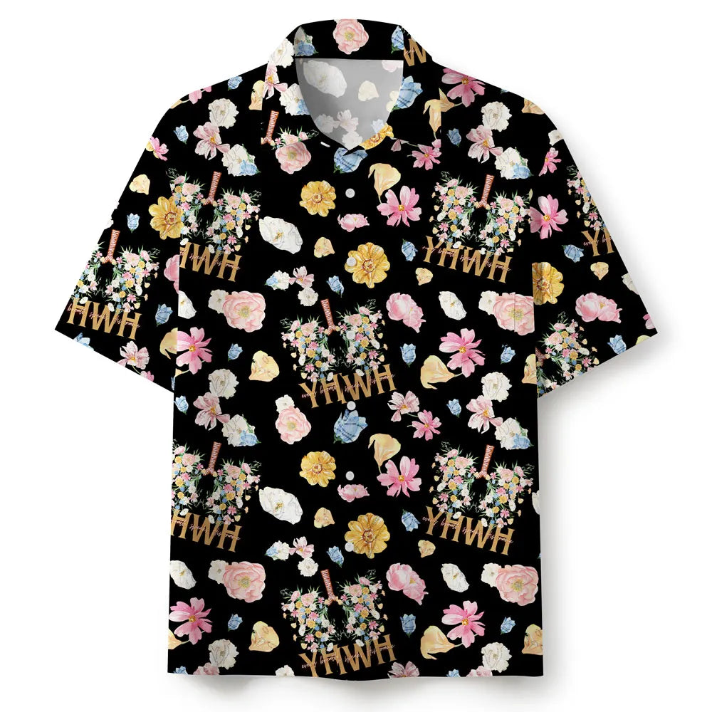 UniJames YHWH Flower Black Christian Hawaiian Shirt