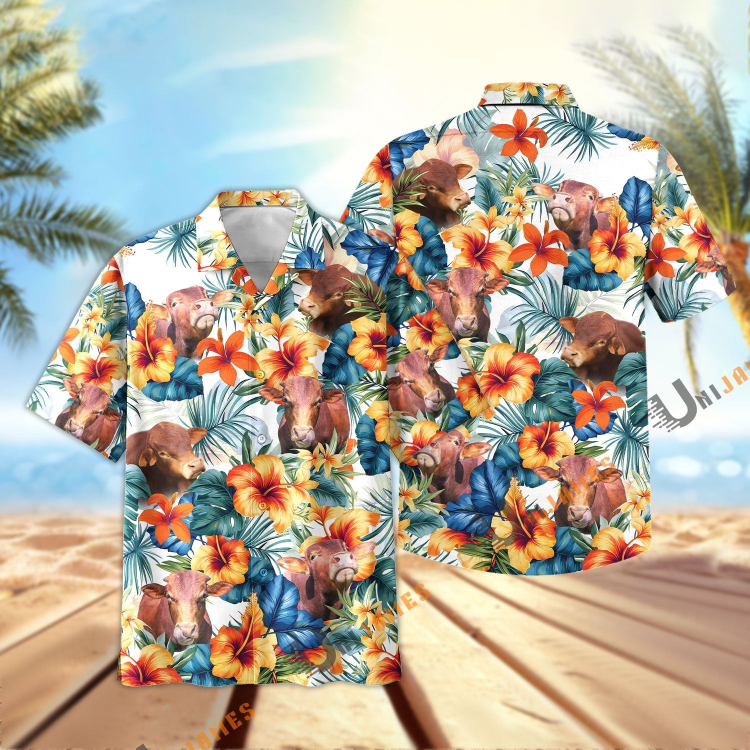 Unique Beefmaster Colorful Summer Flowers and Leaves Hawaiian Shirt