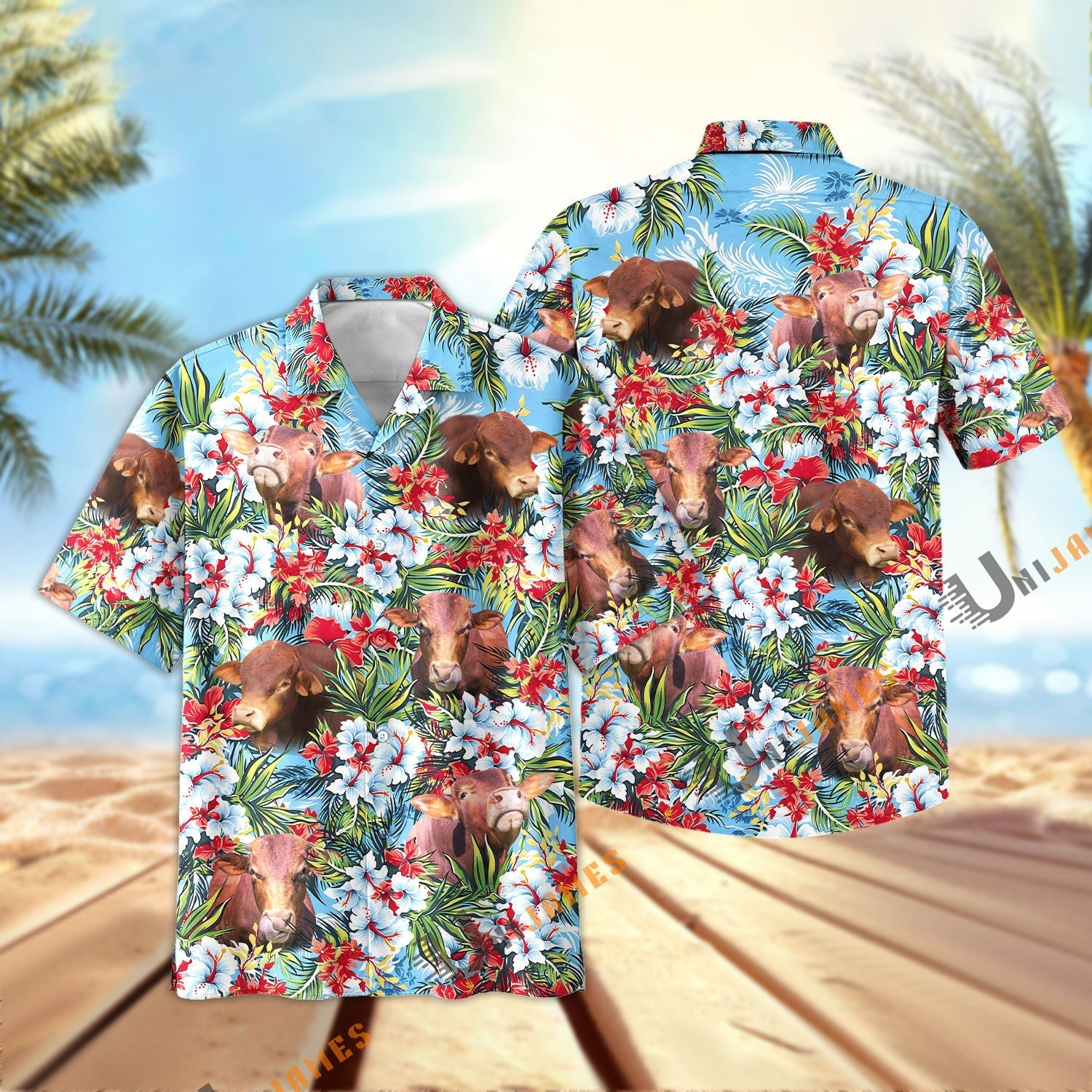 Unique Beefmaster Red and White Flowers 3D Hawaiian Shirt