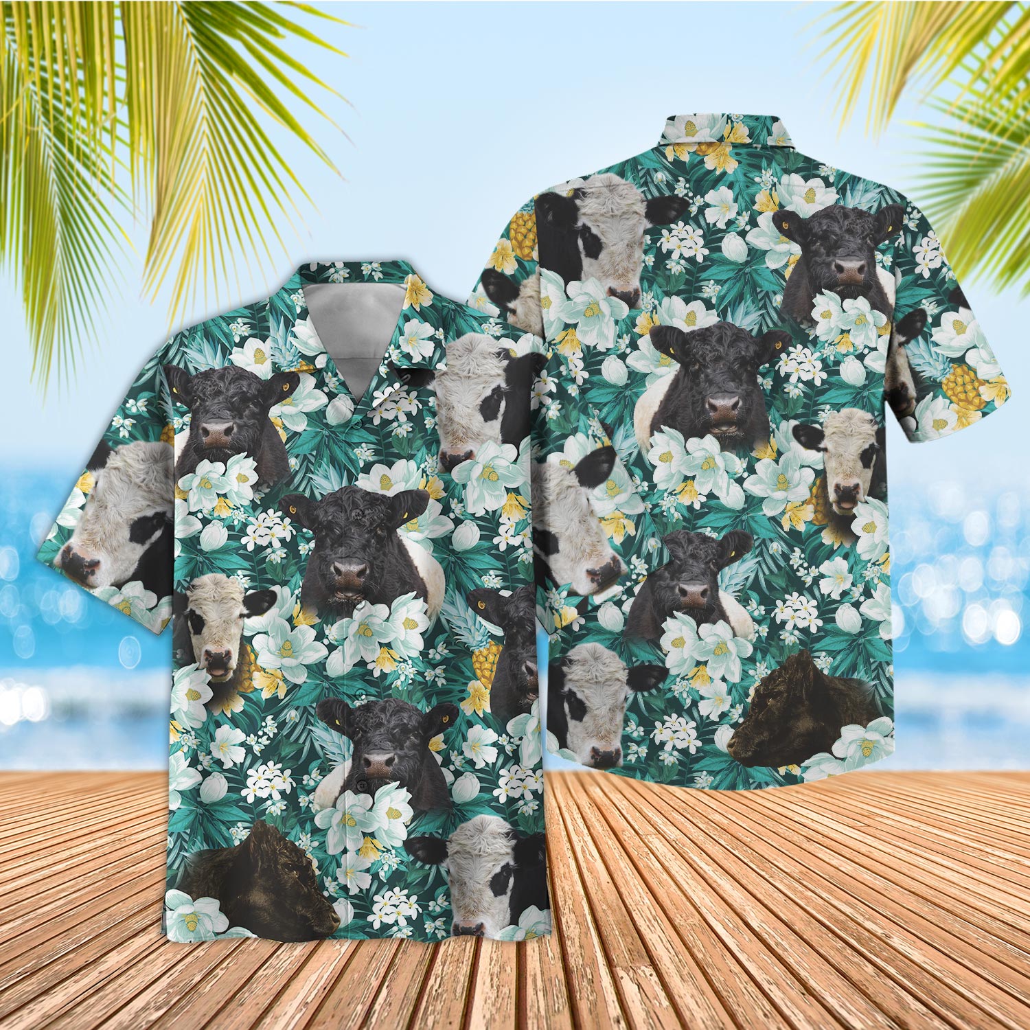 Unique Belted Galloway Floral Blue Summer 3D Hawaiian Shirt