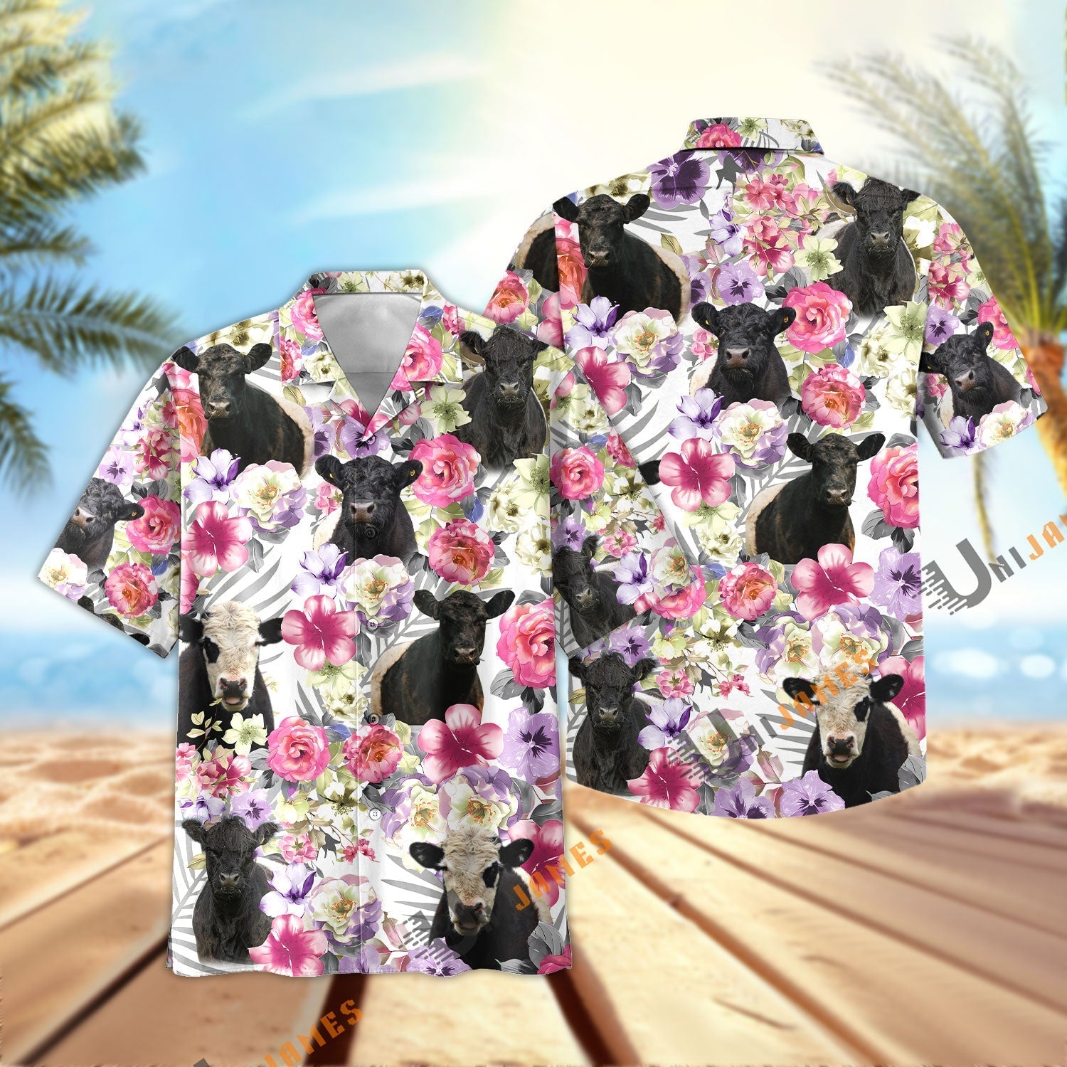 Unique Belted Galloway Seamless Floral Pattern 3D Hawaiian Shirt