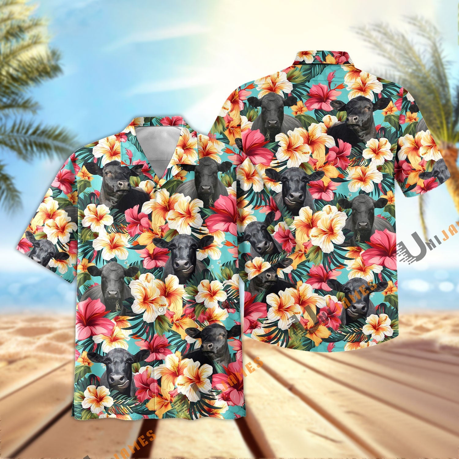 Unique Black Angus Tropical Flower Pattern Seamless Hawaiian Shirt