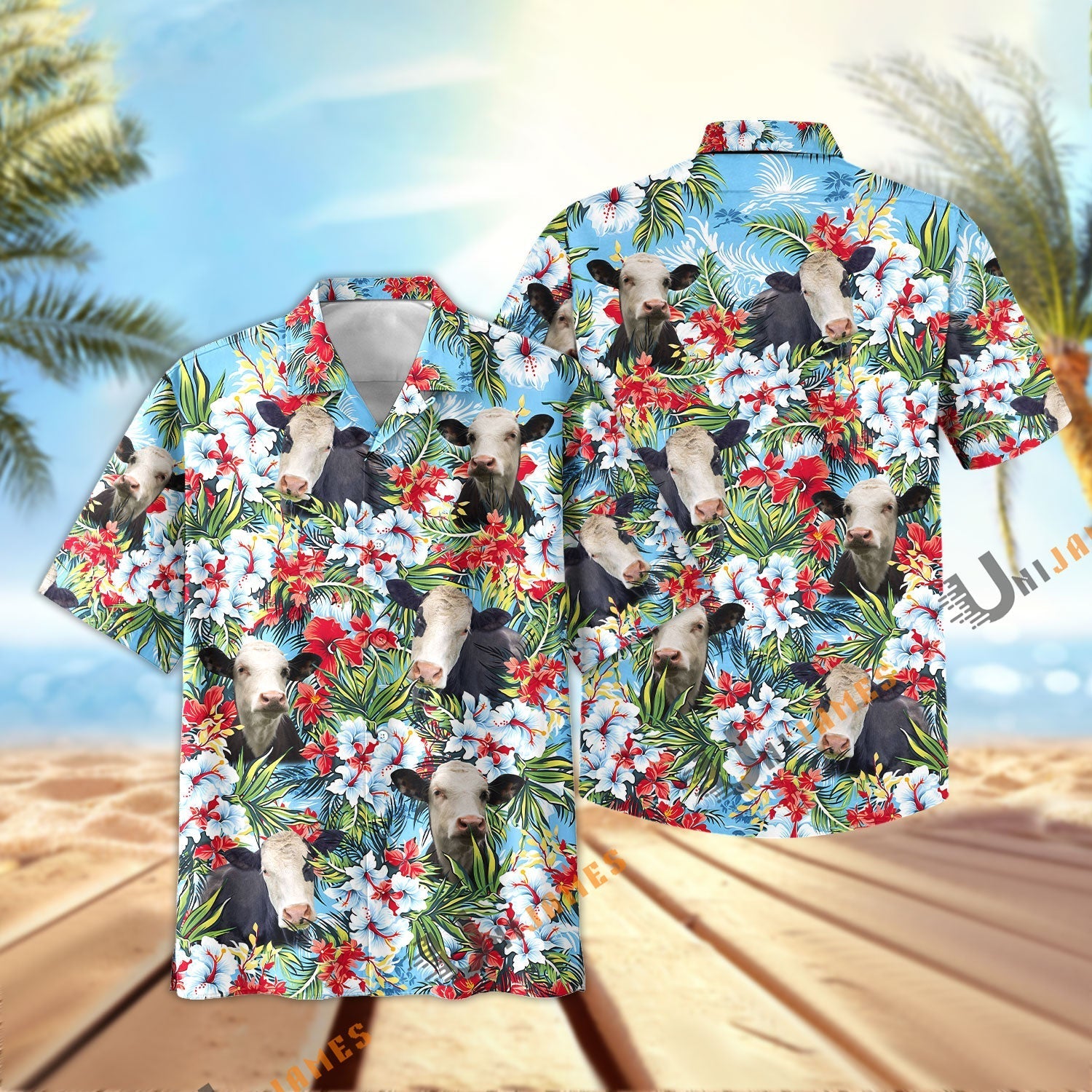 Unique Black Baldy Red and White Flowers 3D Hawaiian Shirt