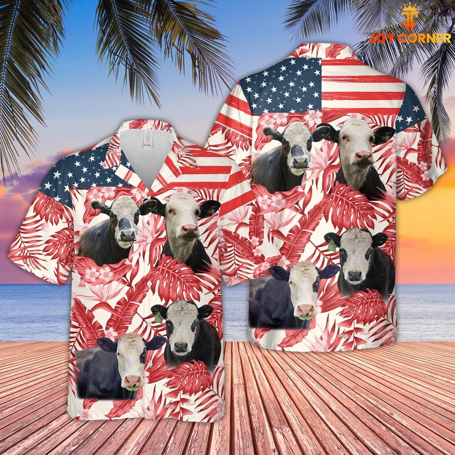 Unique Black Baldy Red Floral US Flag 3D Hawaiian Shirt