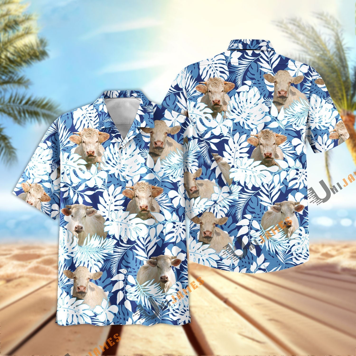 Unique Charolais Blue Summer Pattern Hawaiian Shirt