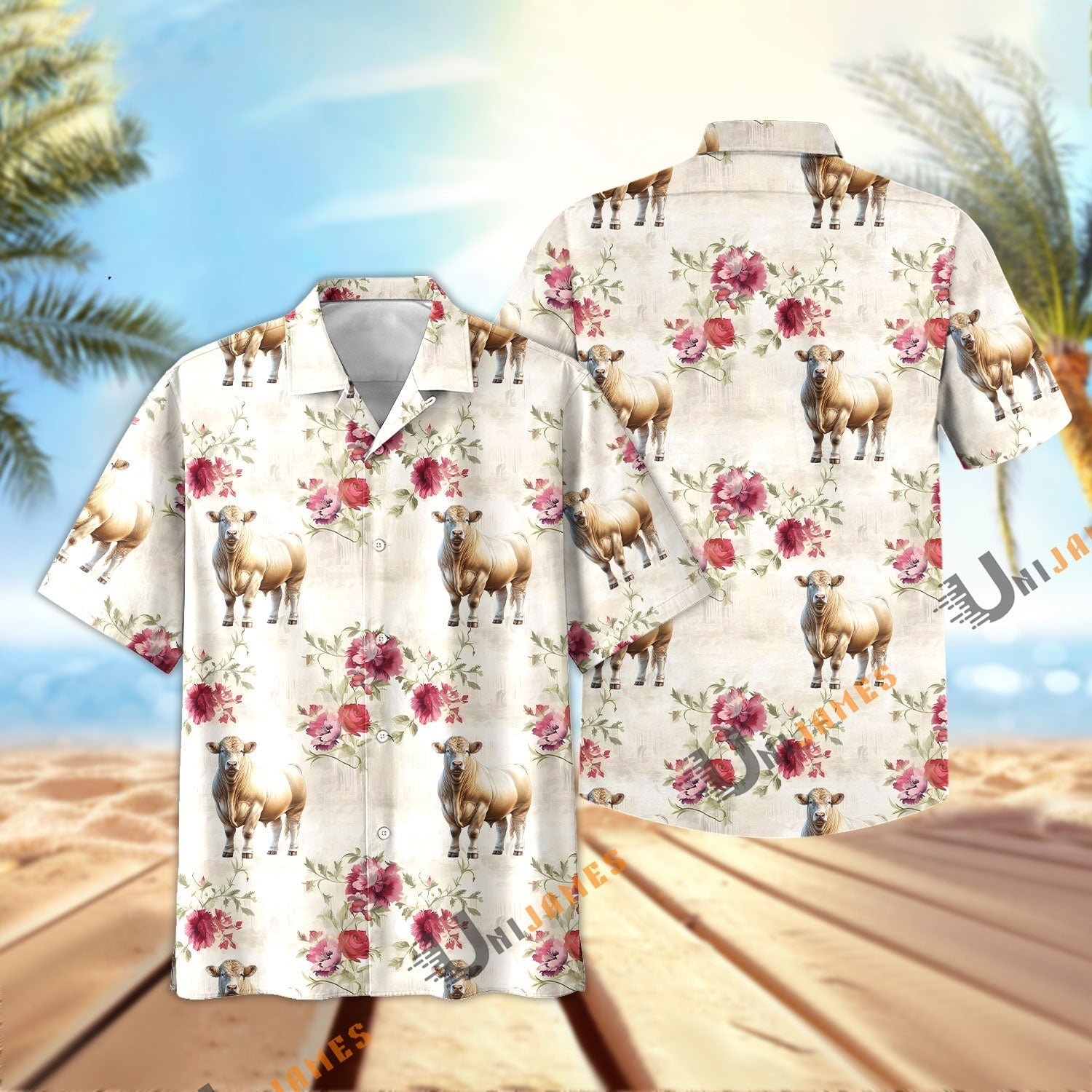 Unique Charolais Floral Vintage Pattern Hawaiian Shirt