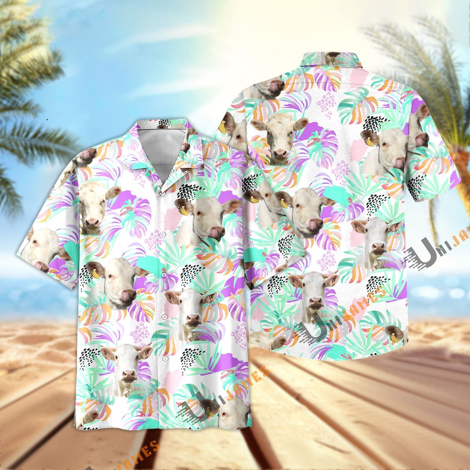 Unique Charolais Purple Tropical Pattern Hawaiian Shirt