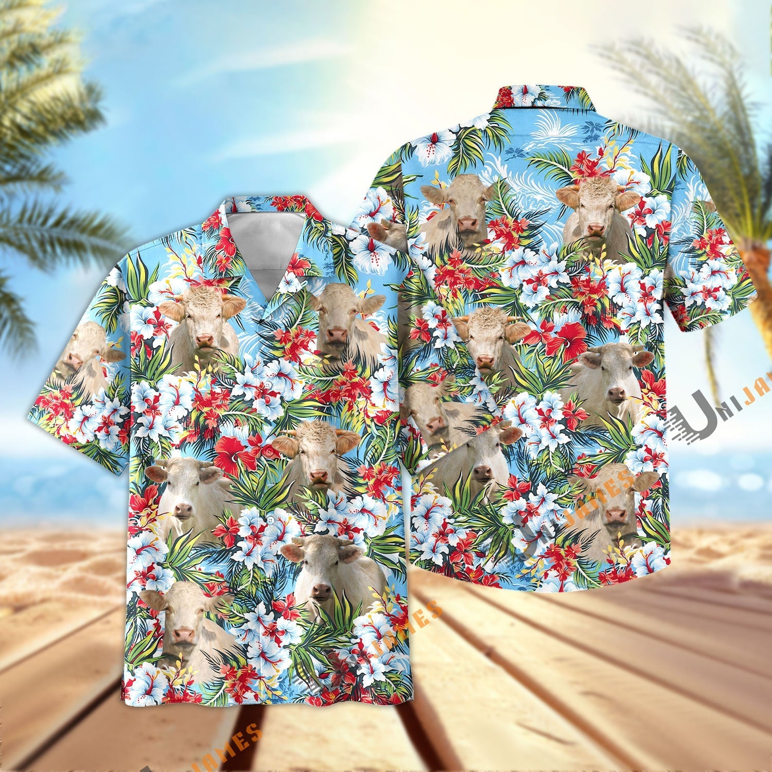 Unique Charolais Red and White Flowers 3D Hawaiian Shirt