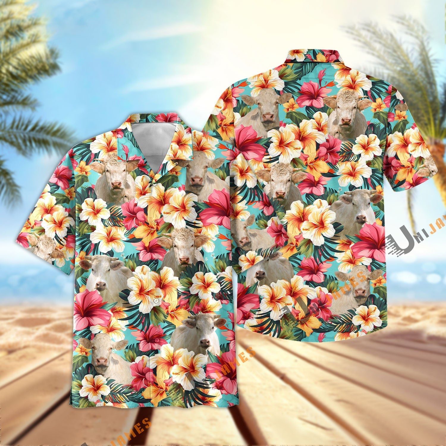 Unique Charolais Tropical Flower Pattern Seamless Hawaiian Shirt