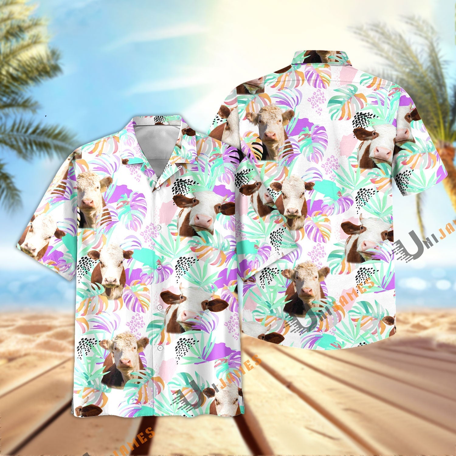 Unique Hereford Purple Tropical Pattern Hawaiian Shirt