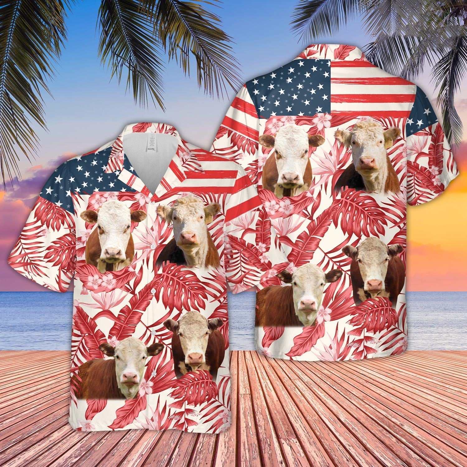 Unique Hereford Red Floral US Flag 3D Hawaiian Shirt