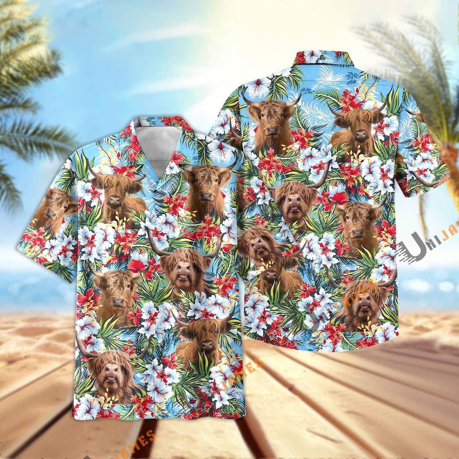 Unique Highland Red and White Flowers 3D Hawaiian Shirt