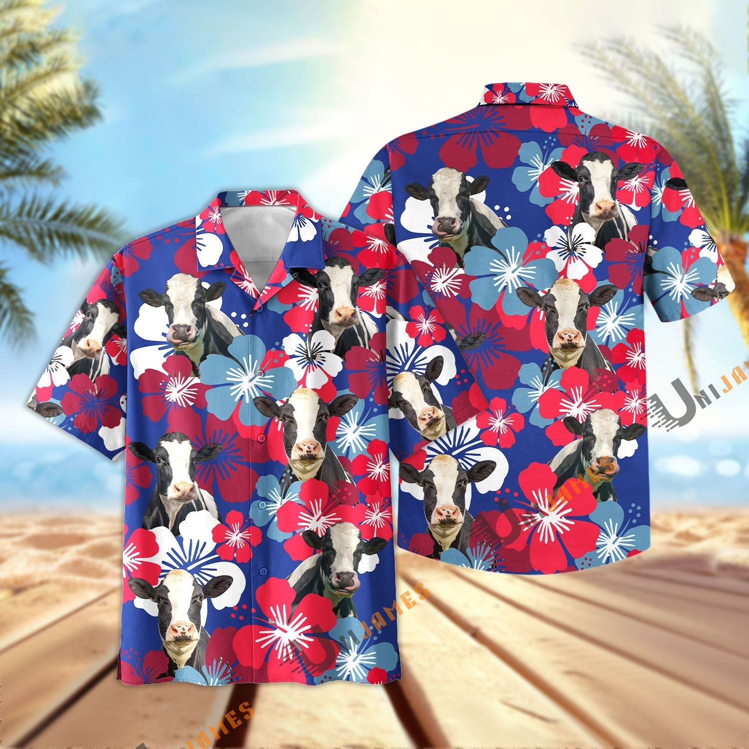 Unique Holstein Flower Blue Red 3D Hawaiian Shirt