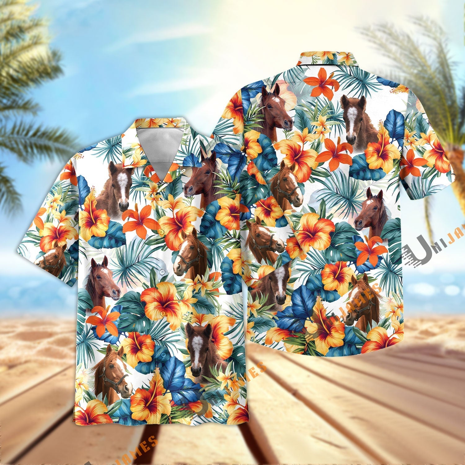 Unique Horse Colorful Summer Flowers and Leaves Hawaiian Shirt