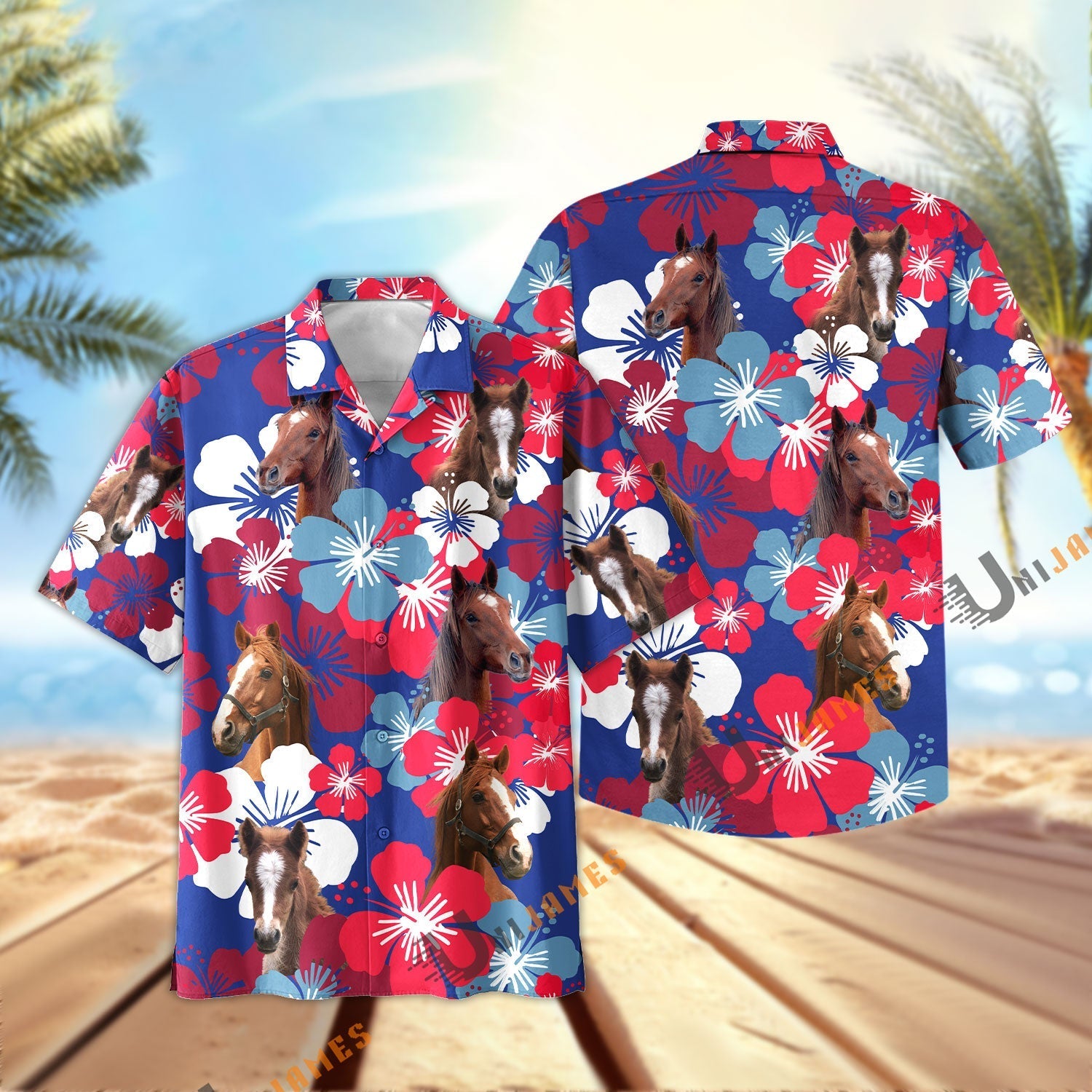 Unique Horse Flower Blue Red 3D Hawaiian Shirt