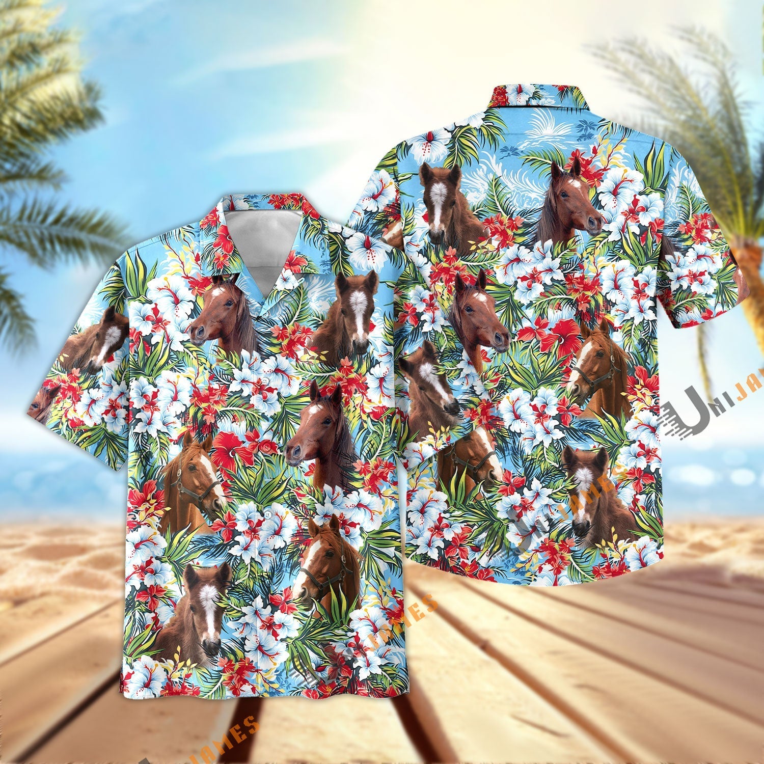 Unique Horse Red and White Flowers 3D Hawaiian Shirt