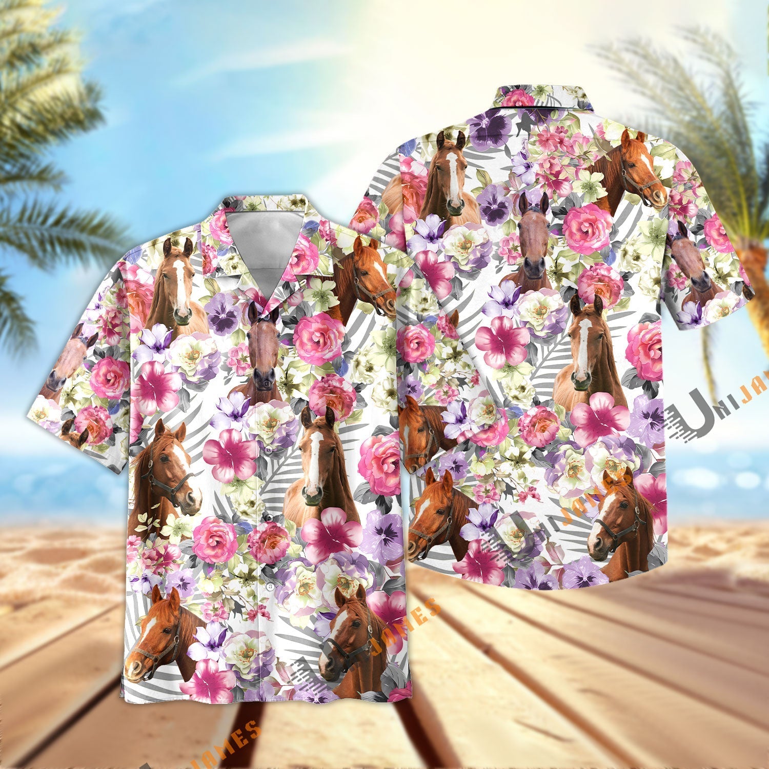 Unique Horse Seamless Floral Pattern 3D Hawaiian Shirt
