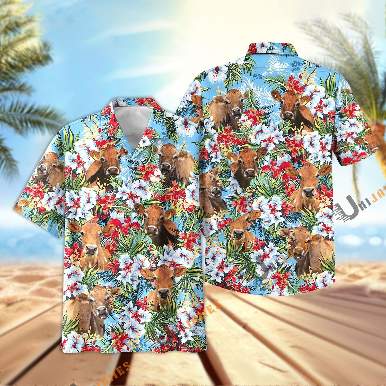 Unique Jersey Red and White Flowers 3D Hawaiian Shirt