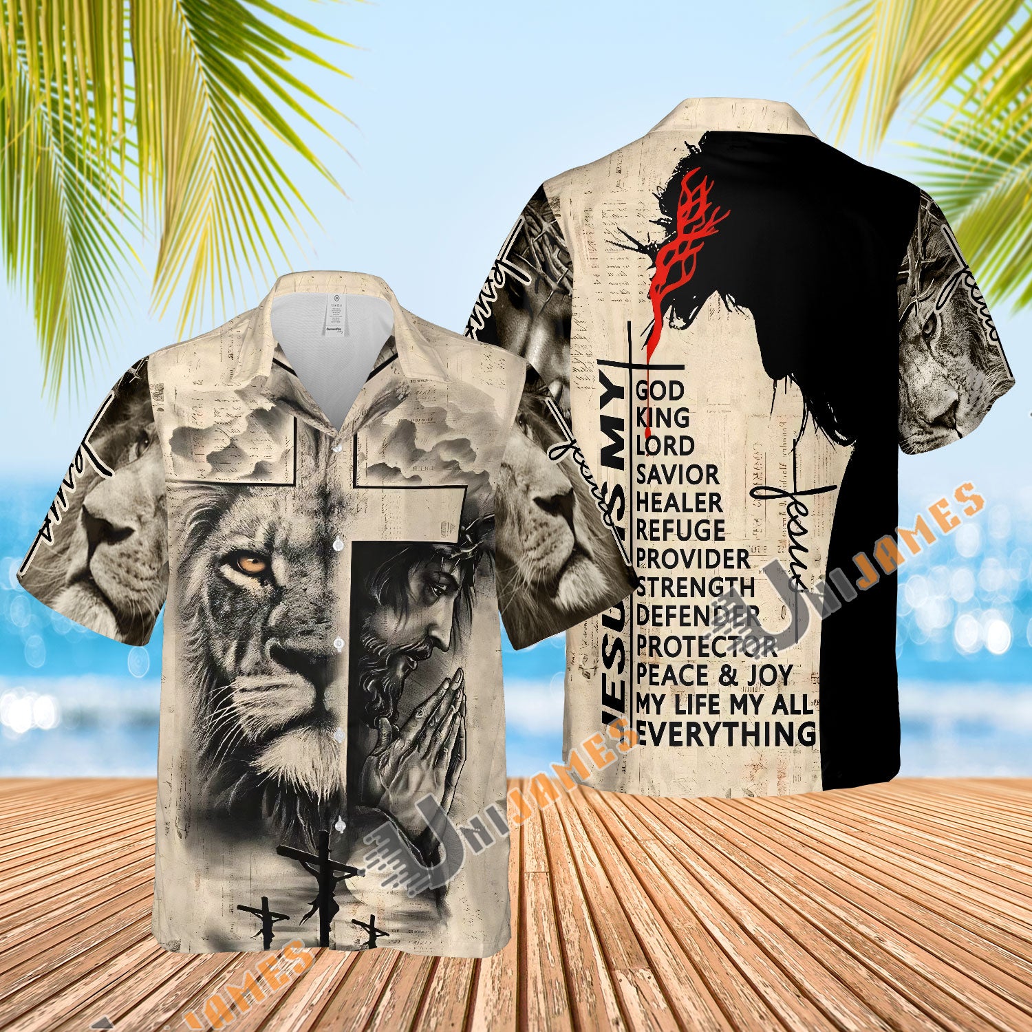 Unique Lion And Jesus Christian Faith Cross Religious Hawaiian Shirt