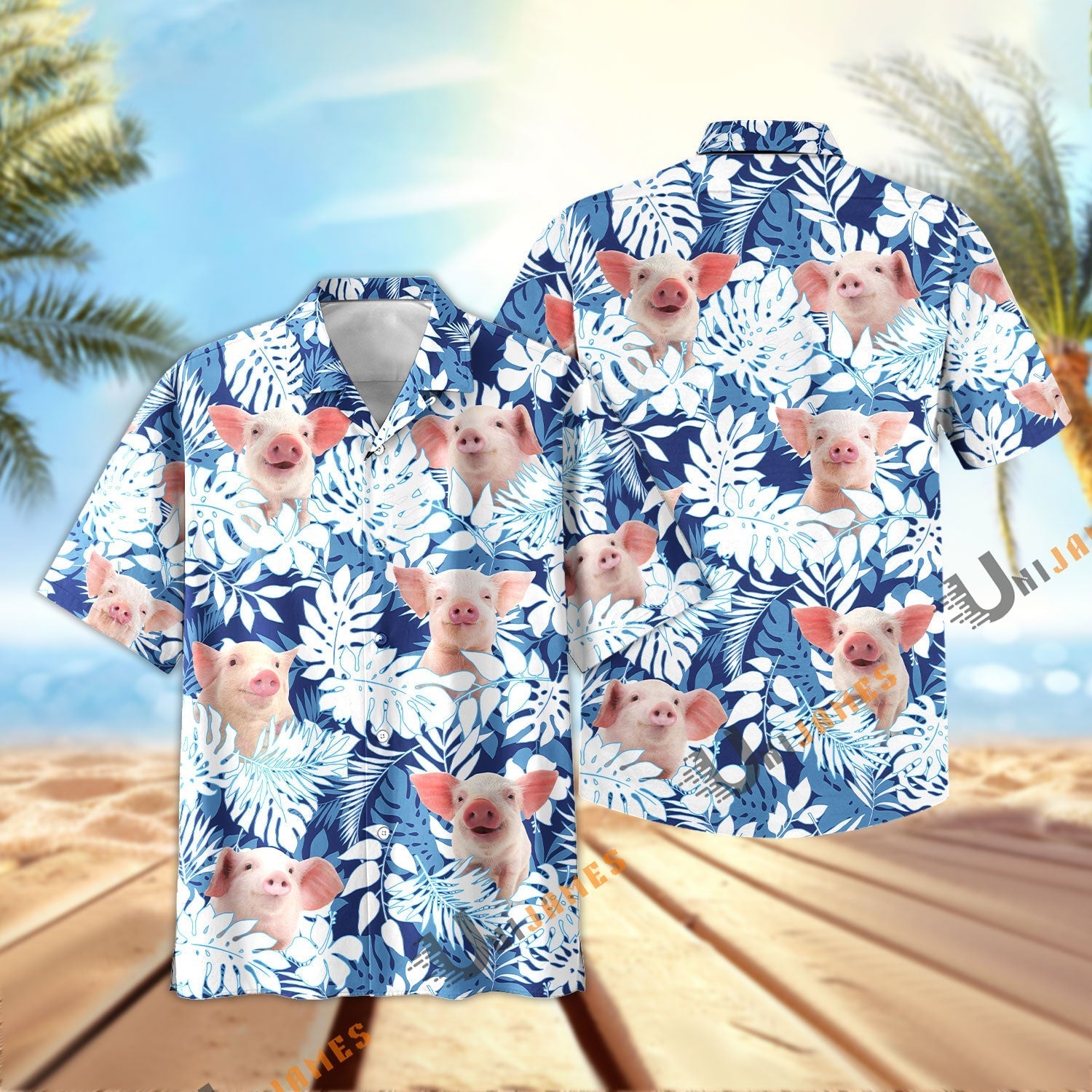 Unique Pig Blue Summer Pattern Hawaiian Shirt