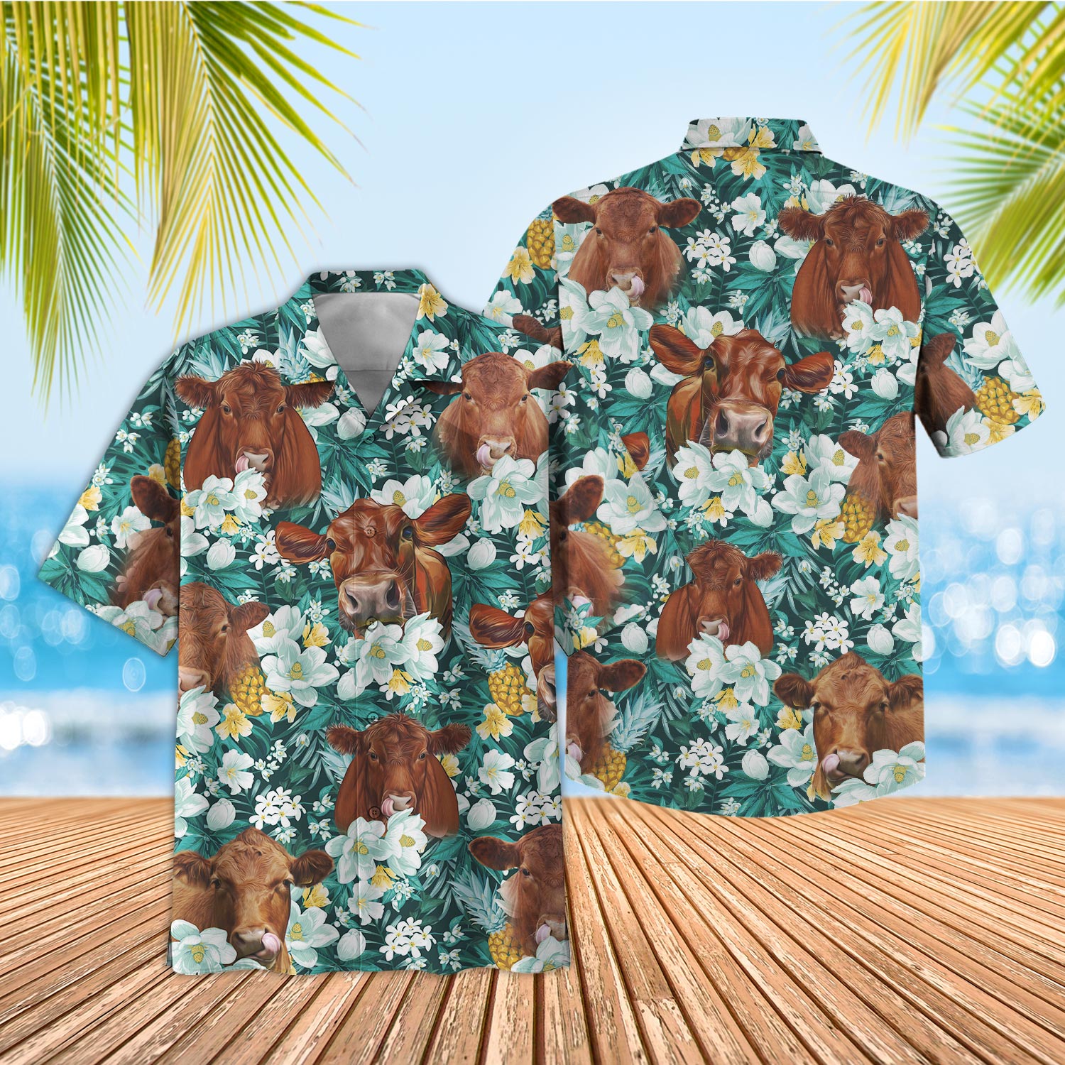 Unique Red Angus Floral Blue Summer 3D Hawaiian Shirt