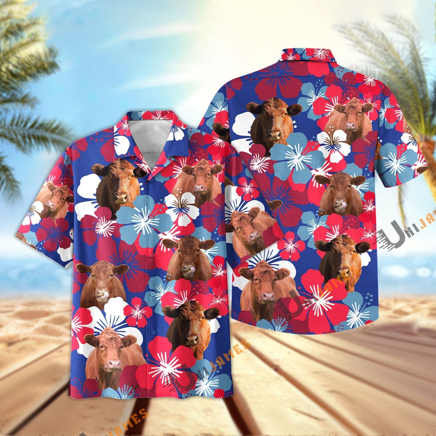 Unique Red Angus Flower Blue Red 3D Hawaiian Shirt