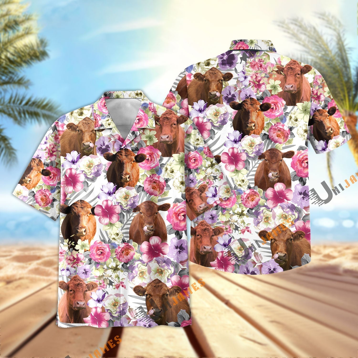 Unique Red Angus Seamless Floral Pattern 3D Hawaiian Shirt